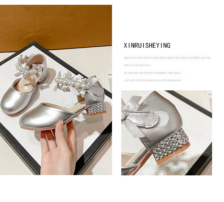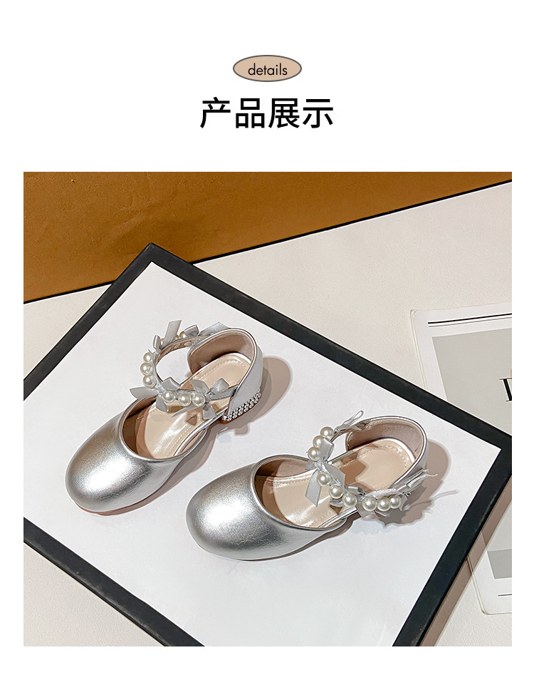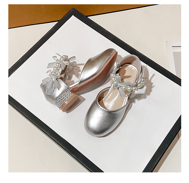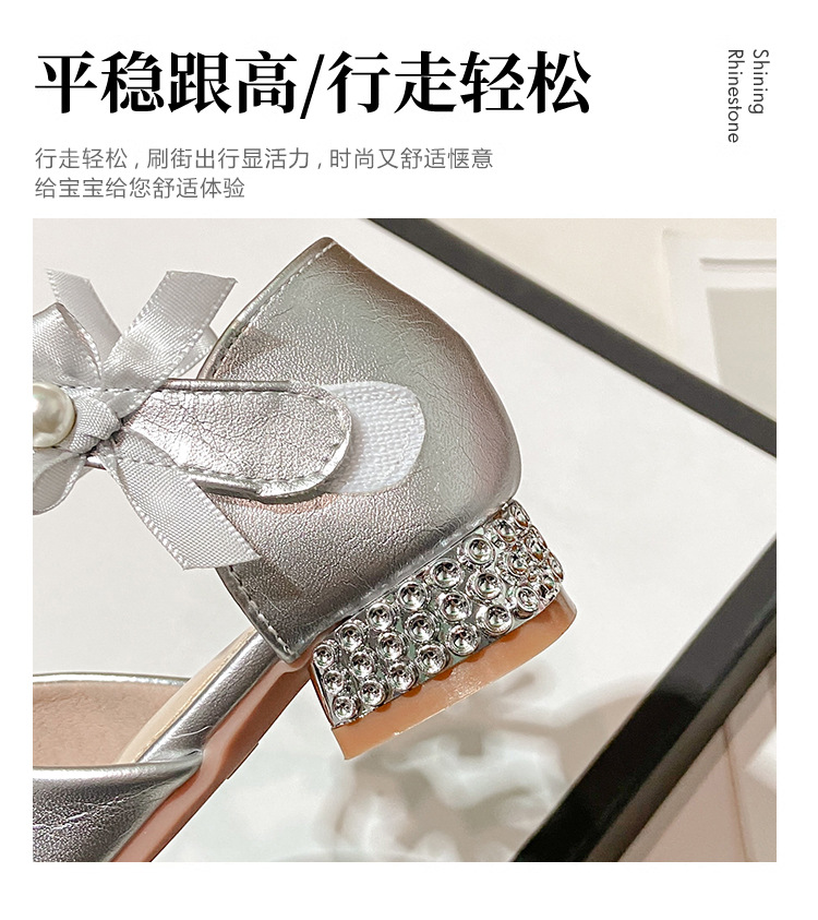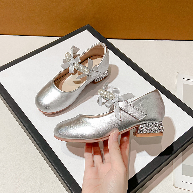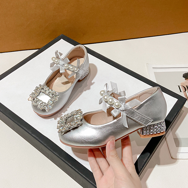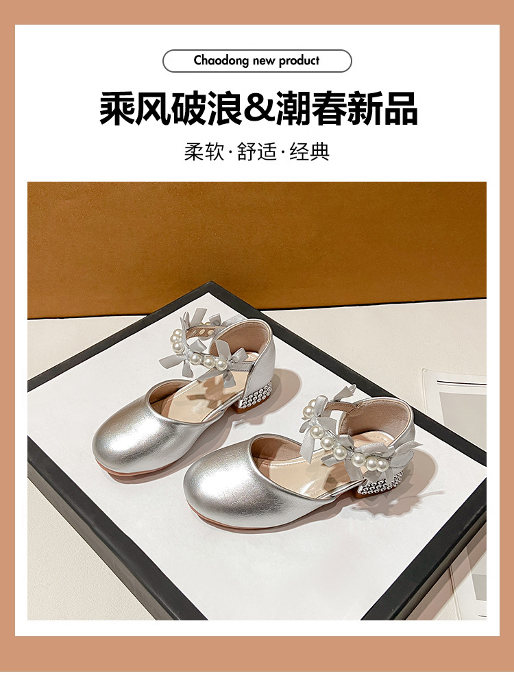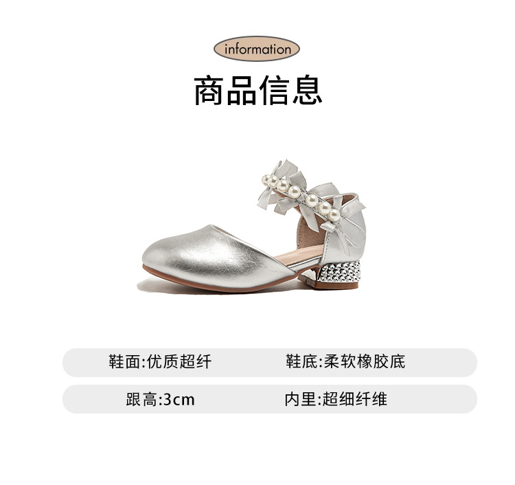 女の子ハイヒール2025春の新しい子供の靴の柔らかい底の女の子は王女の靴の女の宝の靴を演じます。
