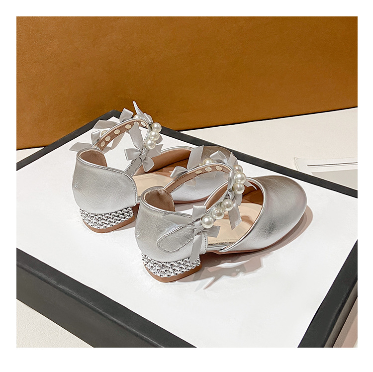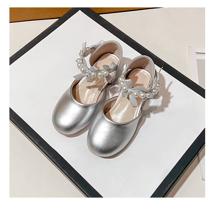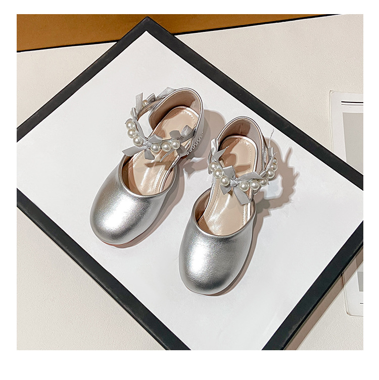 女の子のハイヒール2025の新型の春の銀色の子供の靴の柔らかい底の小さい女の子はショーの靴を演じます。