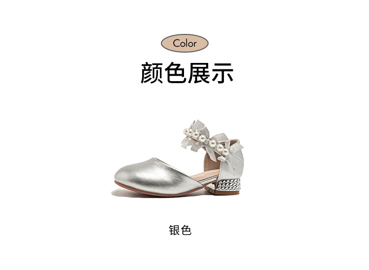 女童凉鞋高跟鞋2025新款银色小女孩单鞋儿童小皮鞋女宝演出配裙子