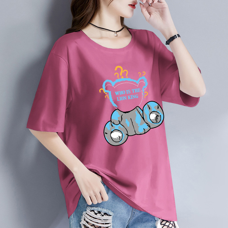 純綿半袖Tシャツレディース2024新作夏韓国風ゆったり大きいサイズミドル丈ラウンドネック五分袖トップス