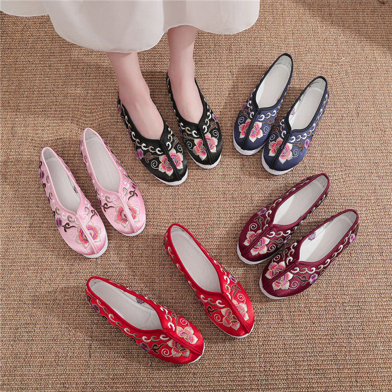 千層底布靴、古い北京刺繍靴、布靴、エスニックスタイルの大人の手作り靴、母親の靴、快適なダンスシューズ