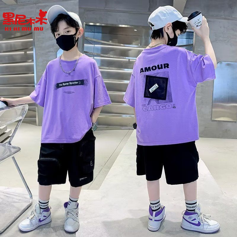 ブラックヘミングウッドボーイズ半袖白Tシャツ子供夏スタイルトップス半袖トレンディ子供服男の子ハンサム服