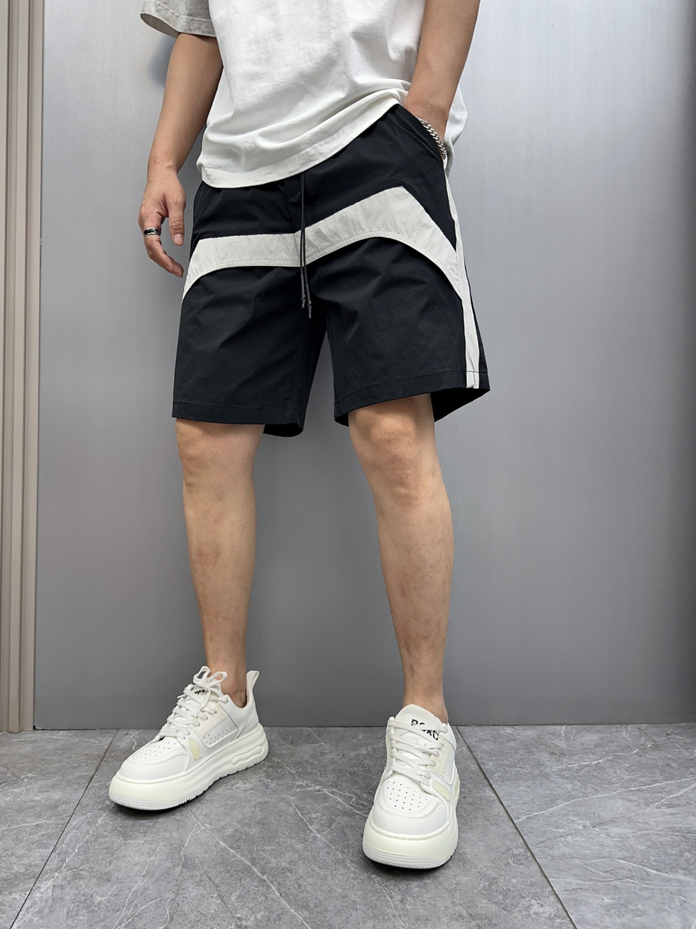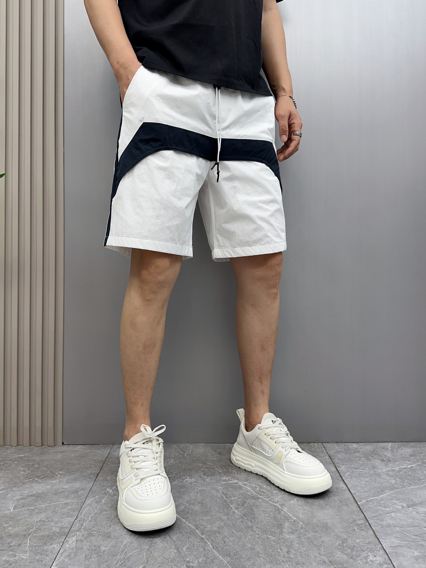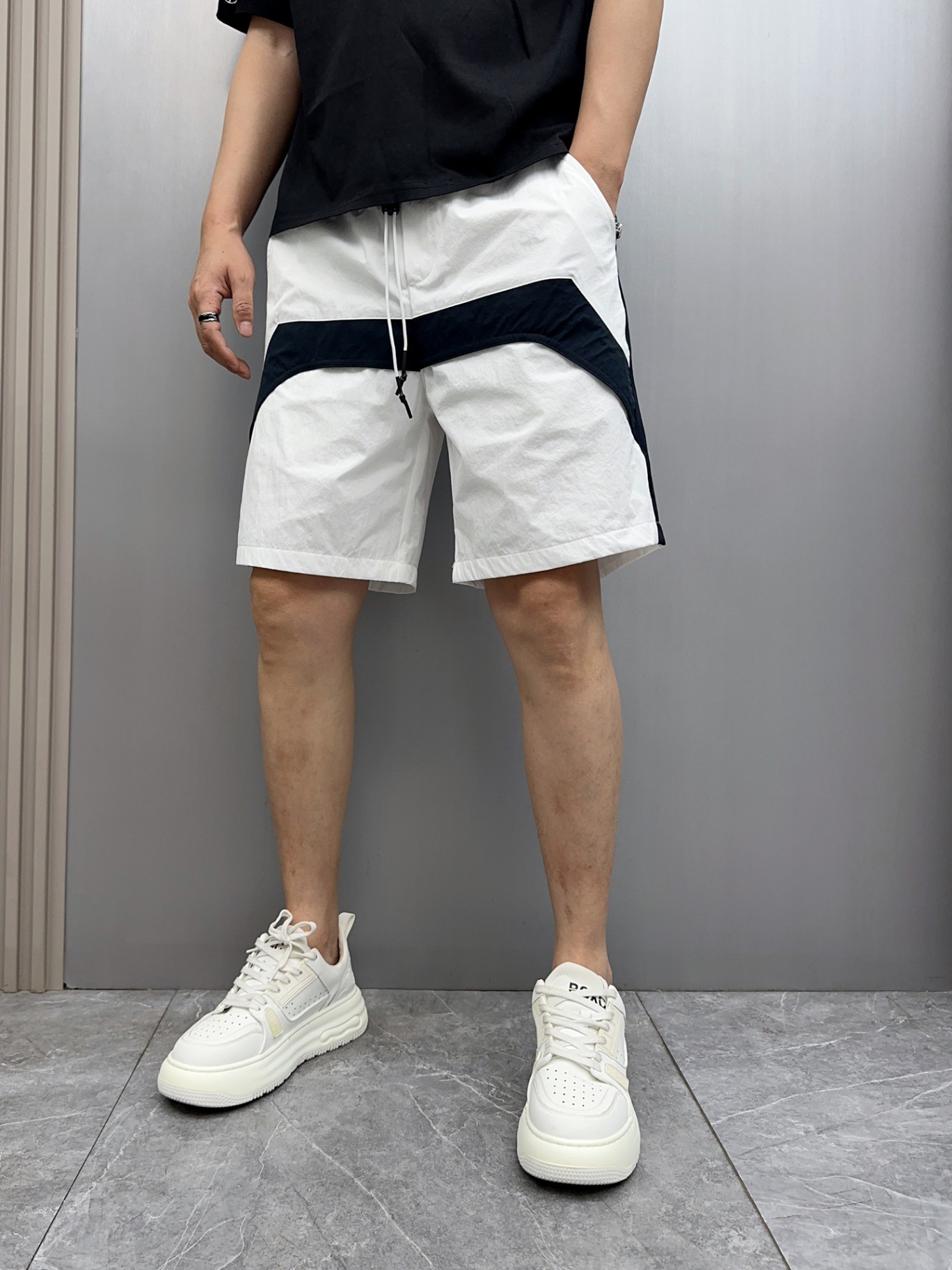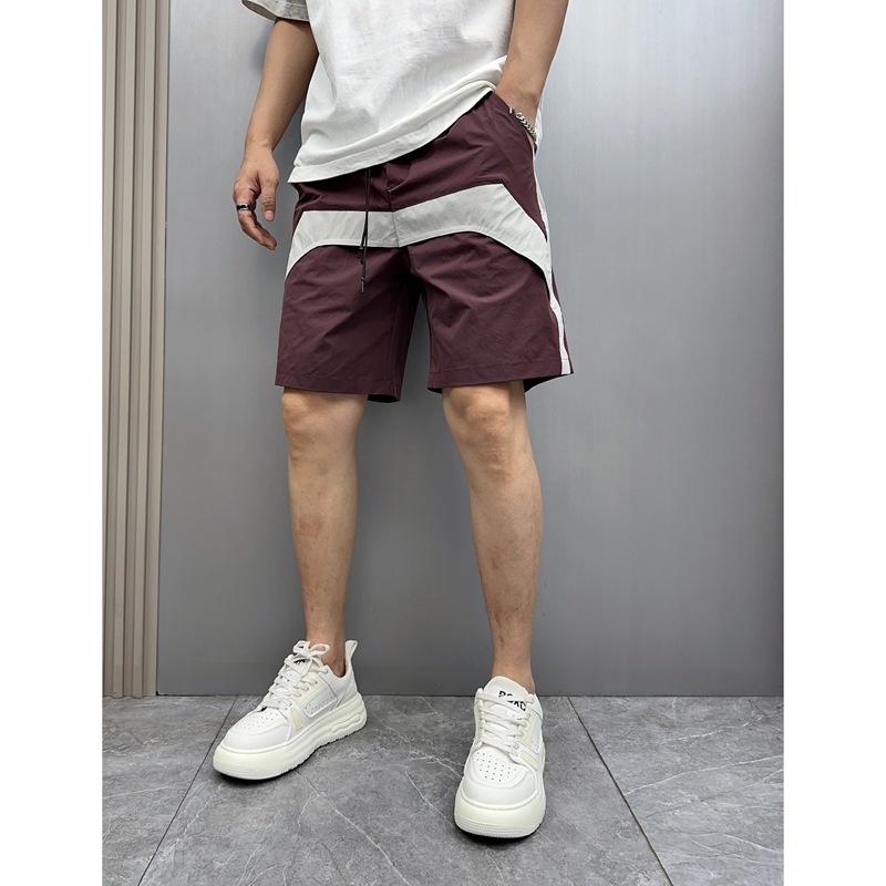 2025 新しい夏のメンズカジュアルショーツルーズストレートスポーツビーチパンツアメリカンカラーブロック 5 点パンツクロスボーダー