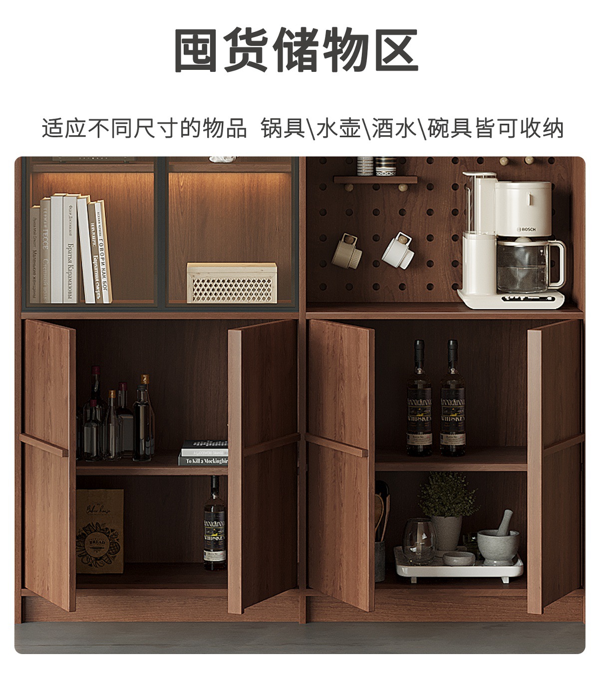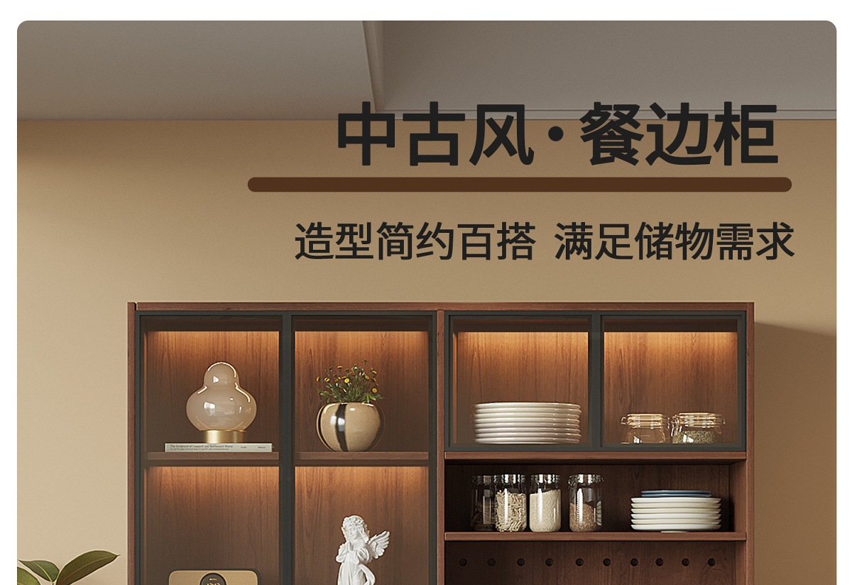 中世スタイルの無垢材サイドボードサイドボード壁一体型収納キャビネット棚パーティションキャビネットホールボードディスプレイキャビネット