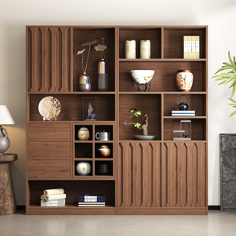 レトロな古物棚無垢材の新しい中国風のディスプレイキャビネットリビングルームティーセットティーカップ収納ラックティーキャビネットDuobaoge Home