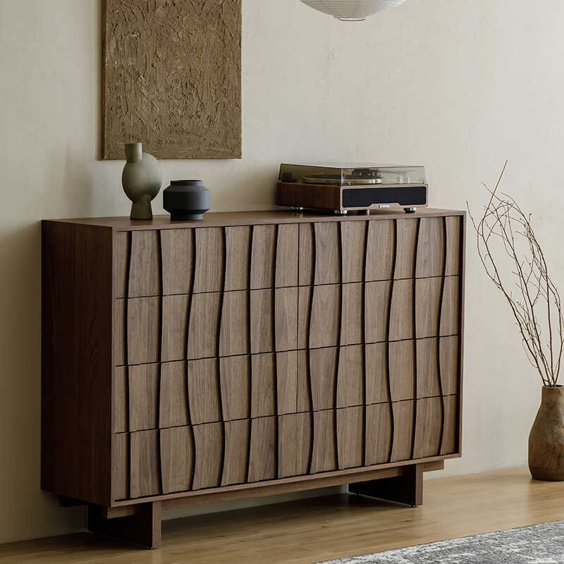 北欧無垢材チェスト ブラックウォールナット引き出しキャビネット シンプルな小さなアパートの寝室 リビングルームの収納 収納キャビネット 6段チェスト