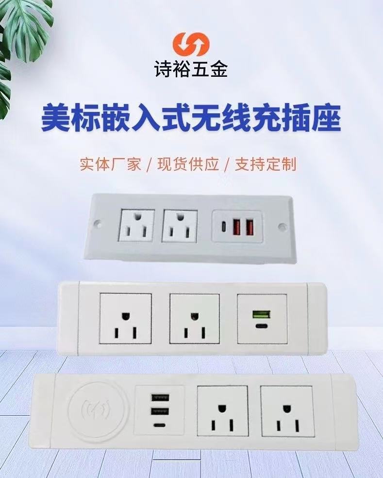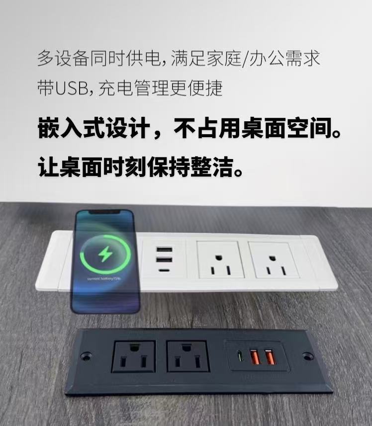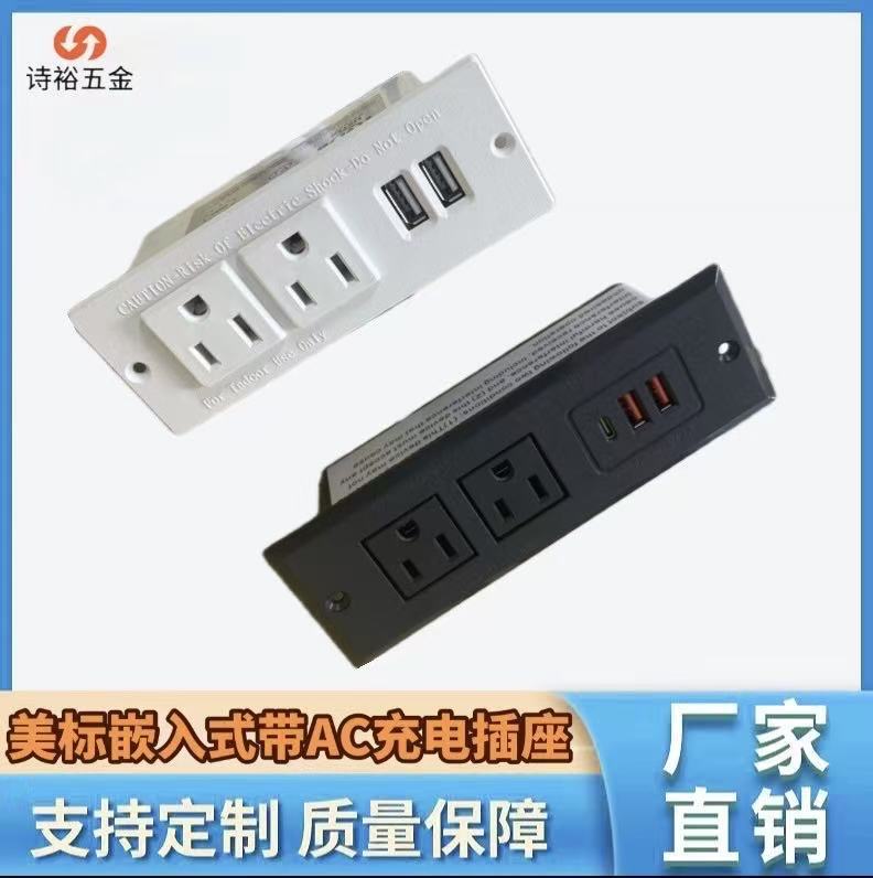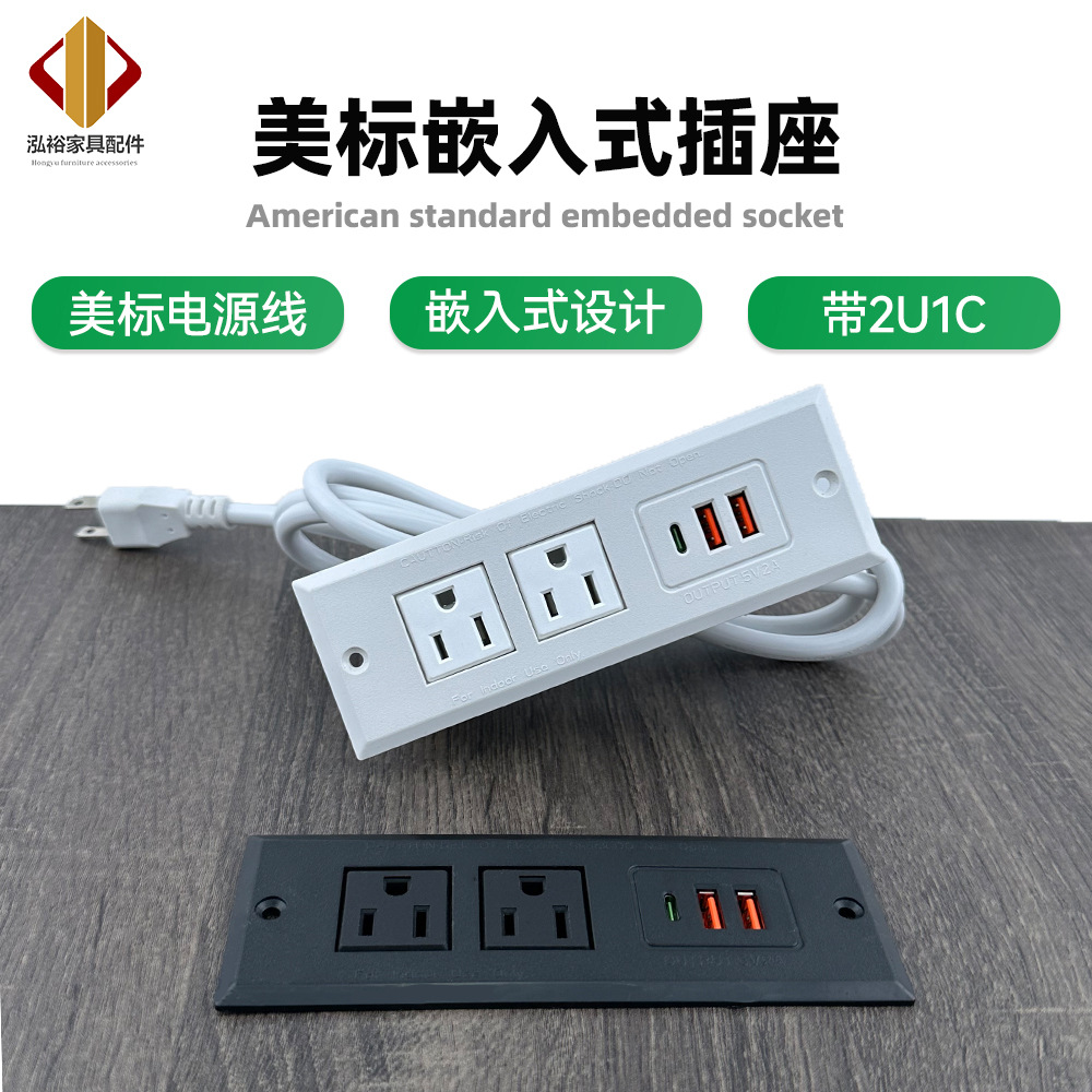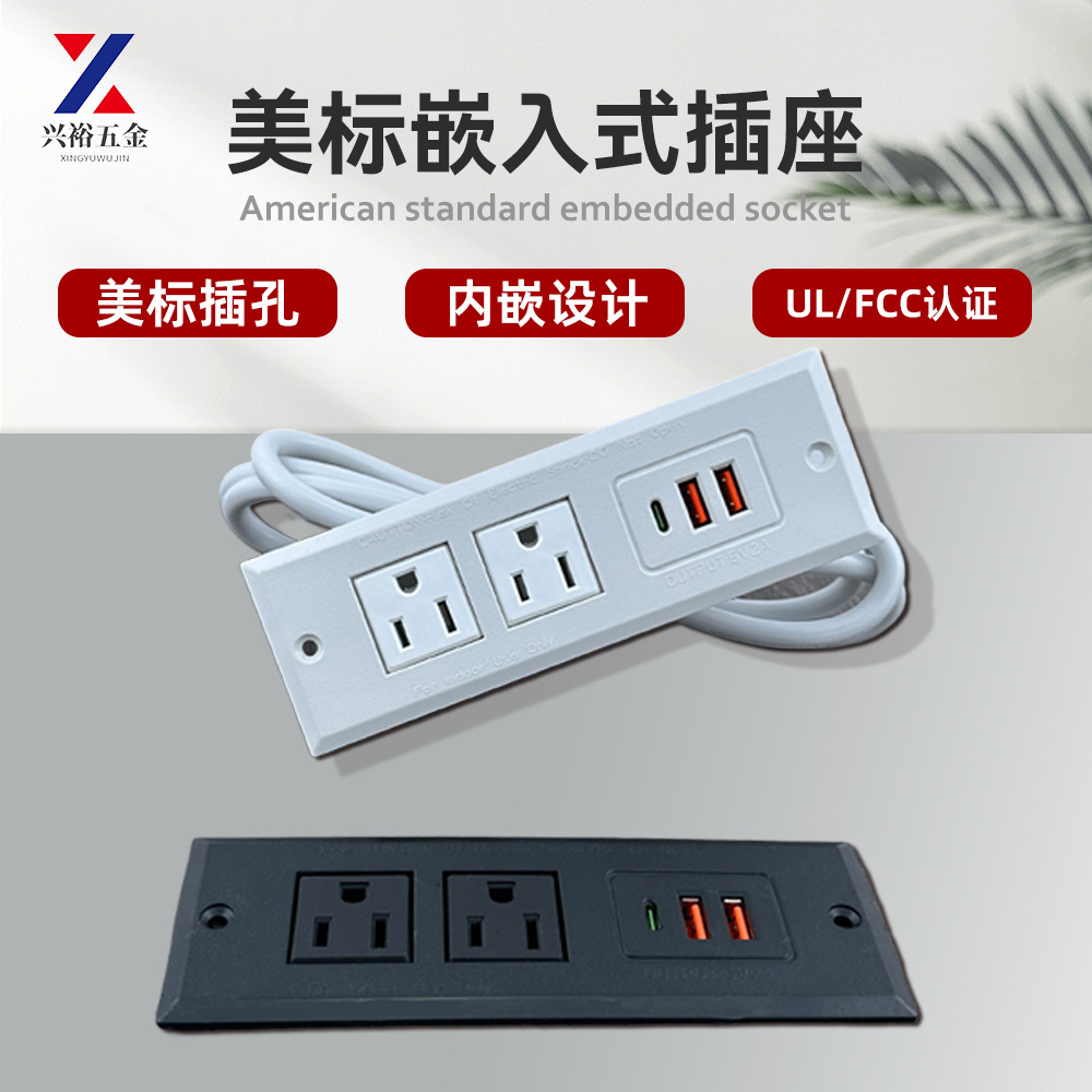 嵌入式美规桌面家具办公插座USB-TYPE-C插座美式排插