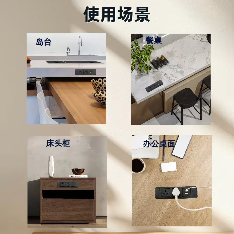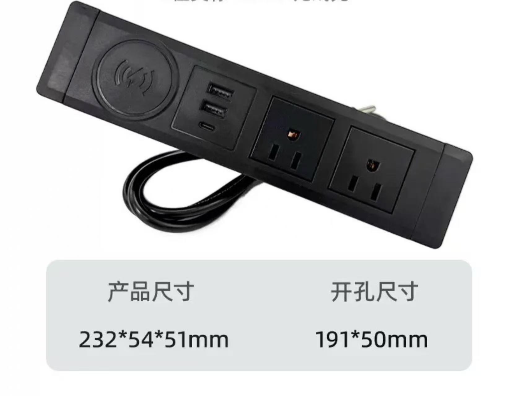 美规2位3位隐形嵌入式插座电源办公桌家具桌面隐藏式美规排插