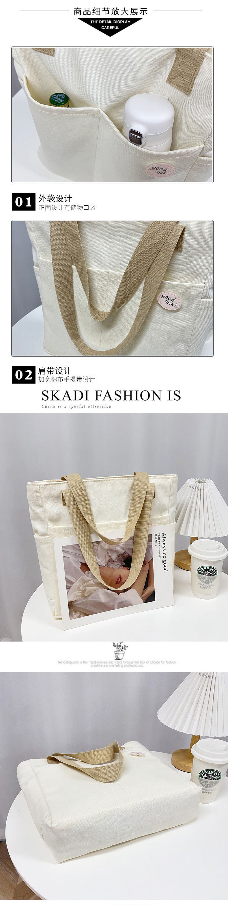 仕事やお出かけに最適な大容量トートキャンバスバッグ、通勤にも万能、文学芸術学生が本を抱えるショルダーバッグ