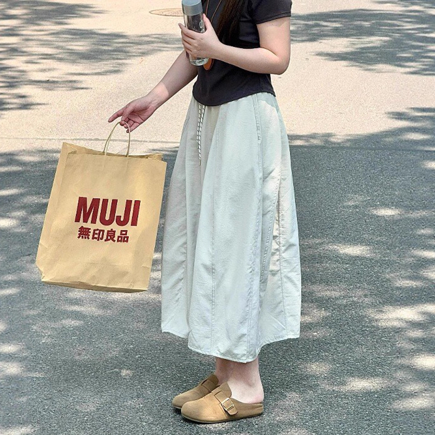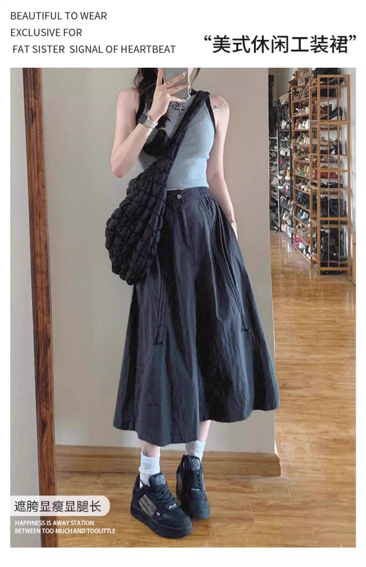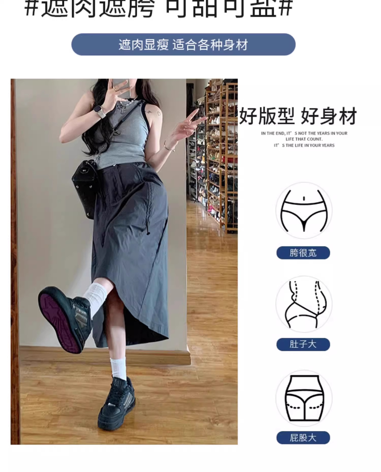 衣本初色遮胯工装半身裙女显瘦字大摆裙松紧腰实力美式子抽绳遮肉