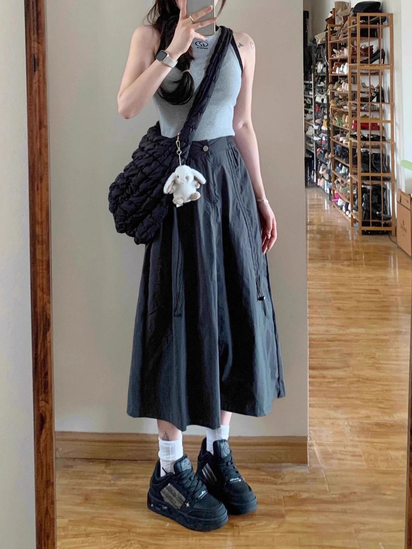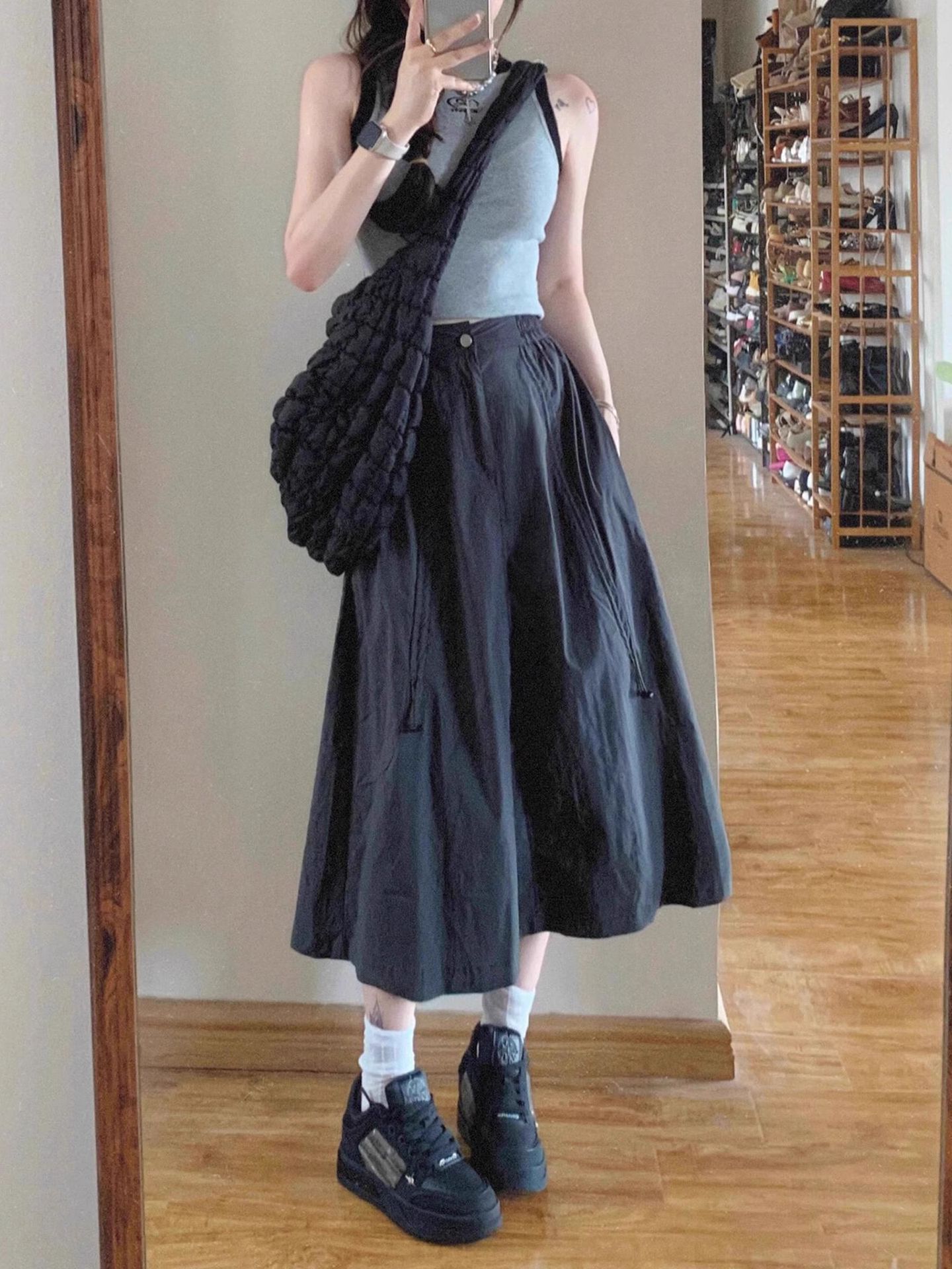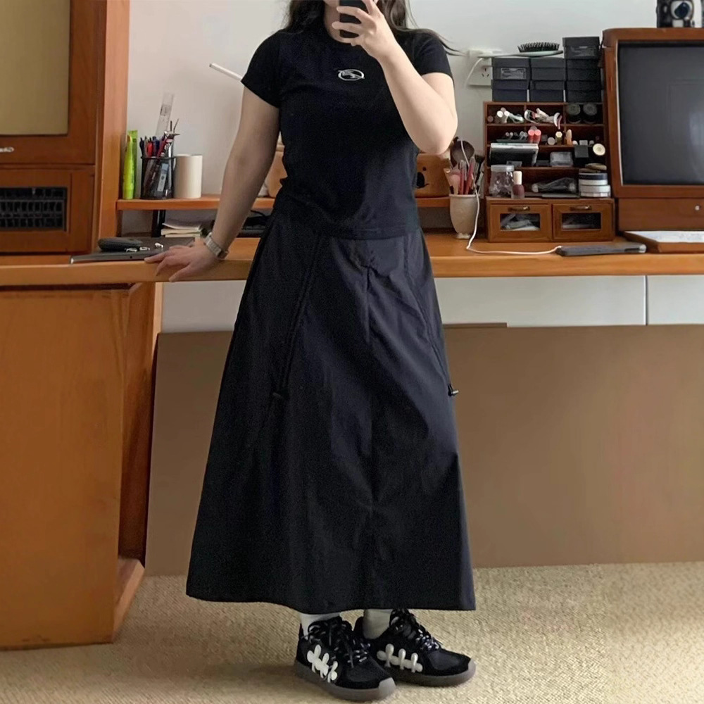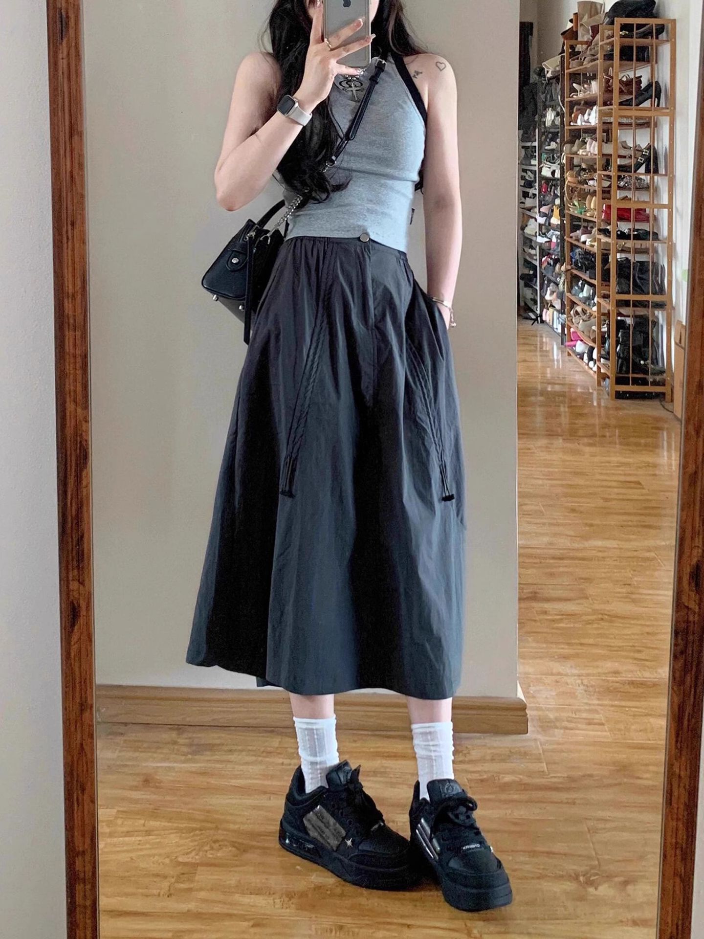 衣本初色遮胯工装半身裙女显瘦字大摆裙松紧腰实力美式子抽绳遮肉