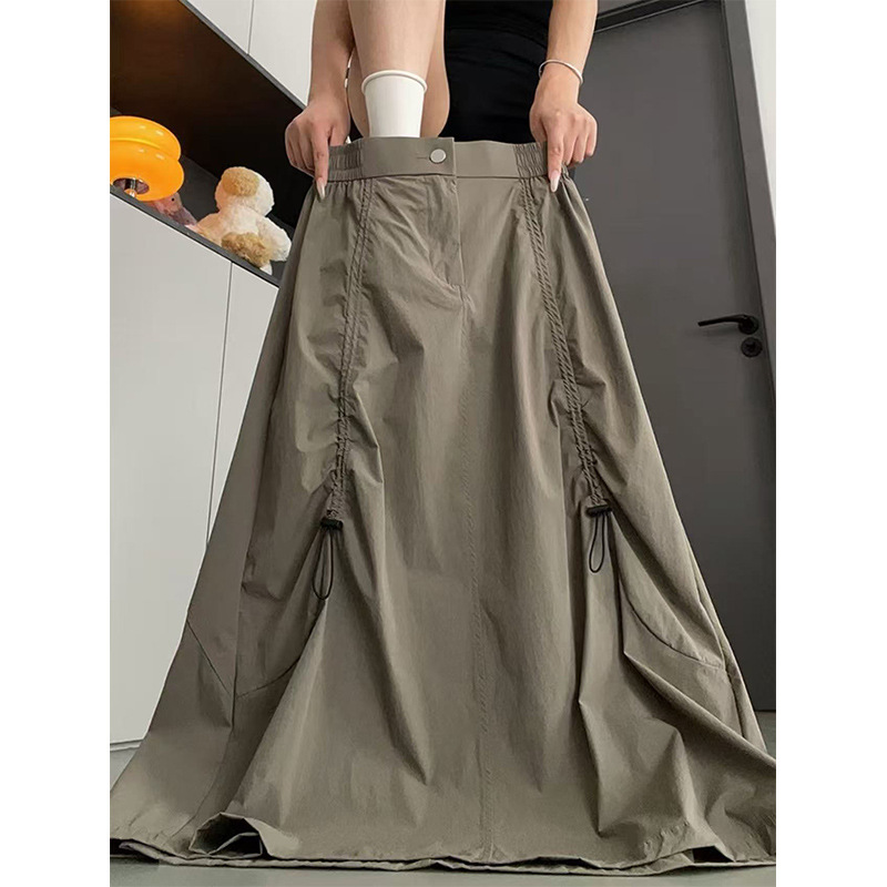 美式抽绳工装裙女春秋新款高腰显瘦休闲a字伞裙遮肉小个子半身裙