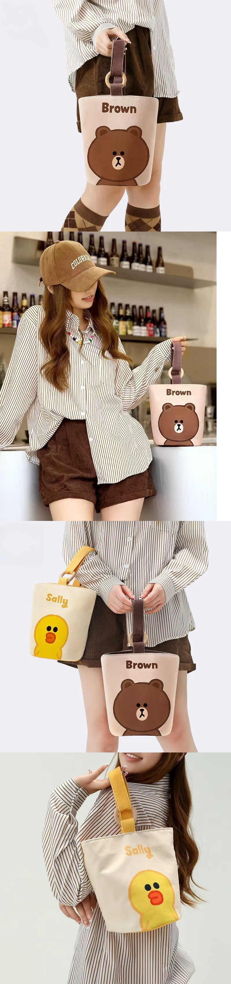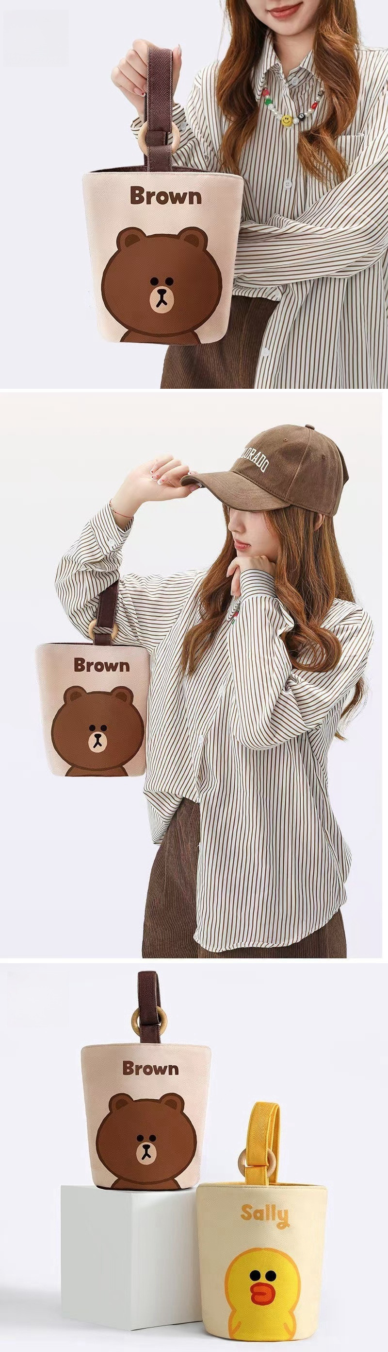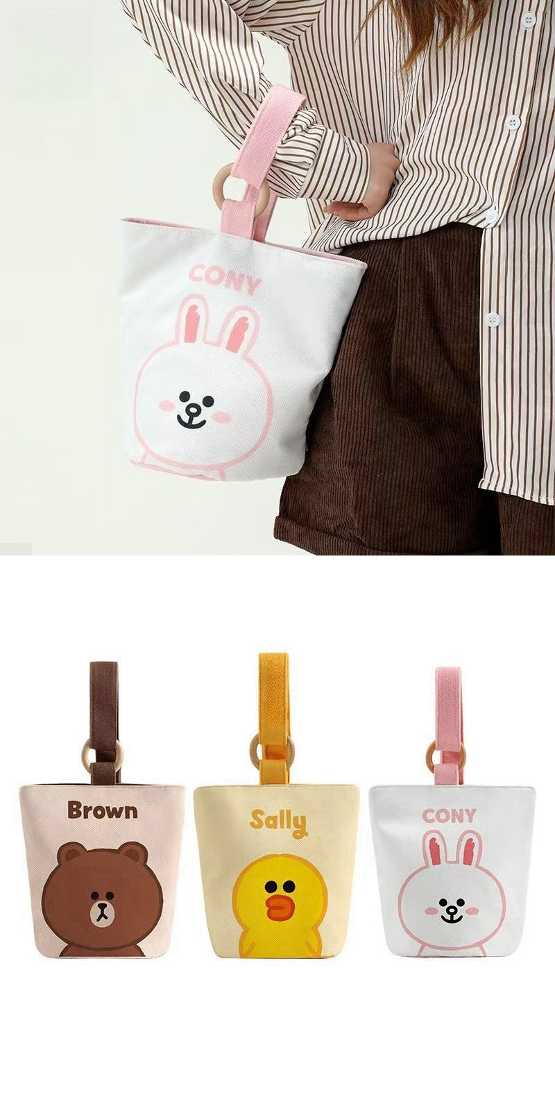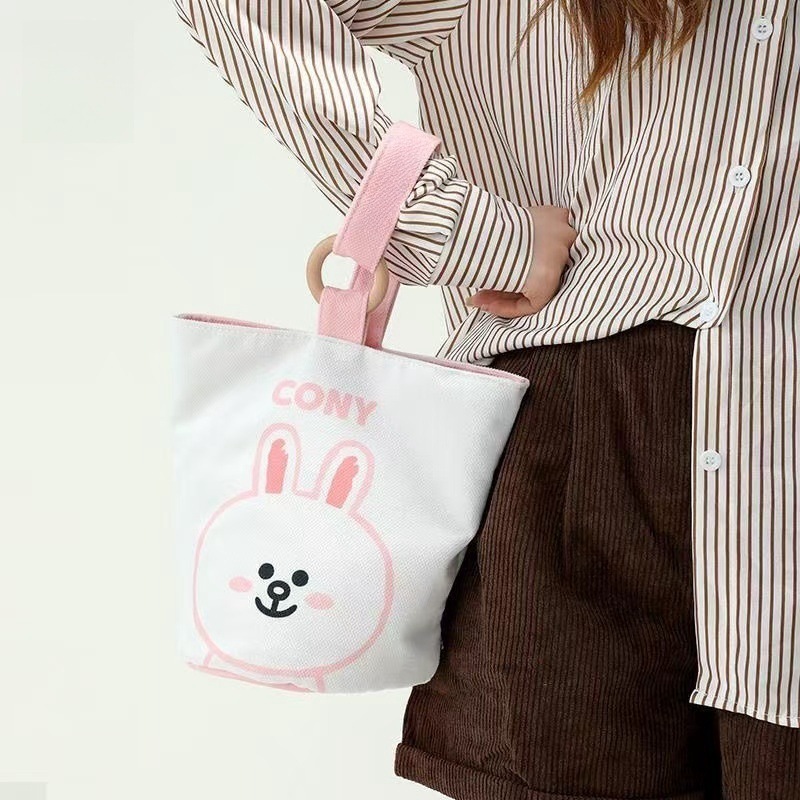 新しいスタイルのポータブルハンドバッグキャンバスバケットバッグかわいいバケツ型ハンドランチバッグママの外出ハンドバッグ