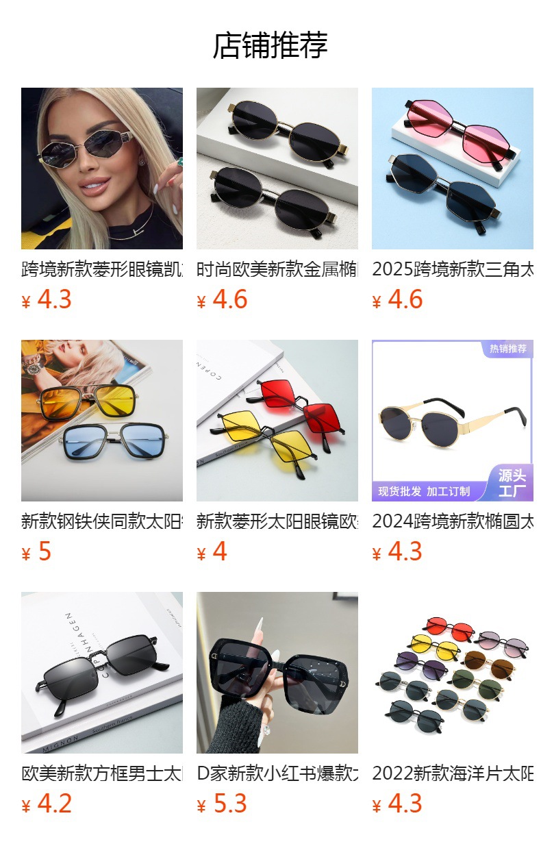 クロスボーダー新作オーバルサングラス、アマゾン人気メタルトレンドメガネ、ファッショナブルな男女兼用日焼け止めサングラス