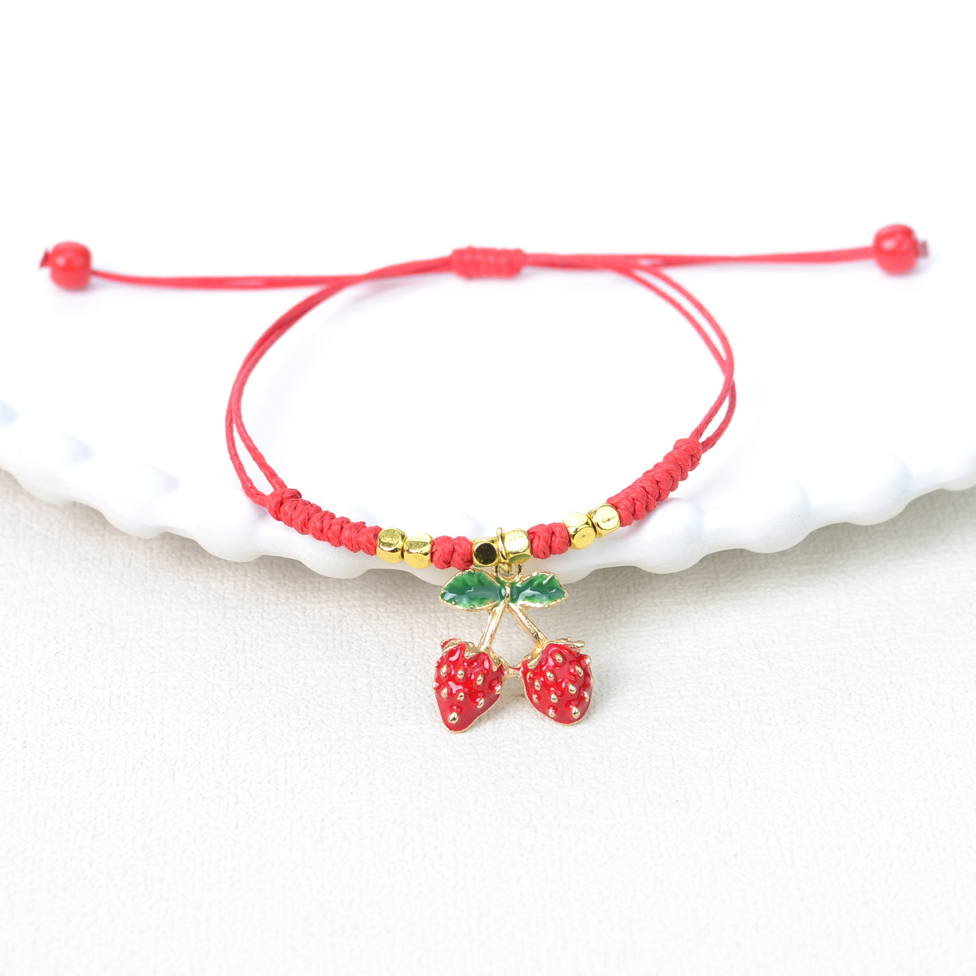干支年レッドロープカップルブレスレット女性のための diy ストロベリーチェリーブレスレット編組親友学生ギフトジュエリー