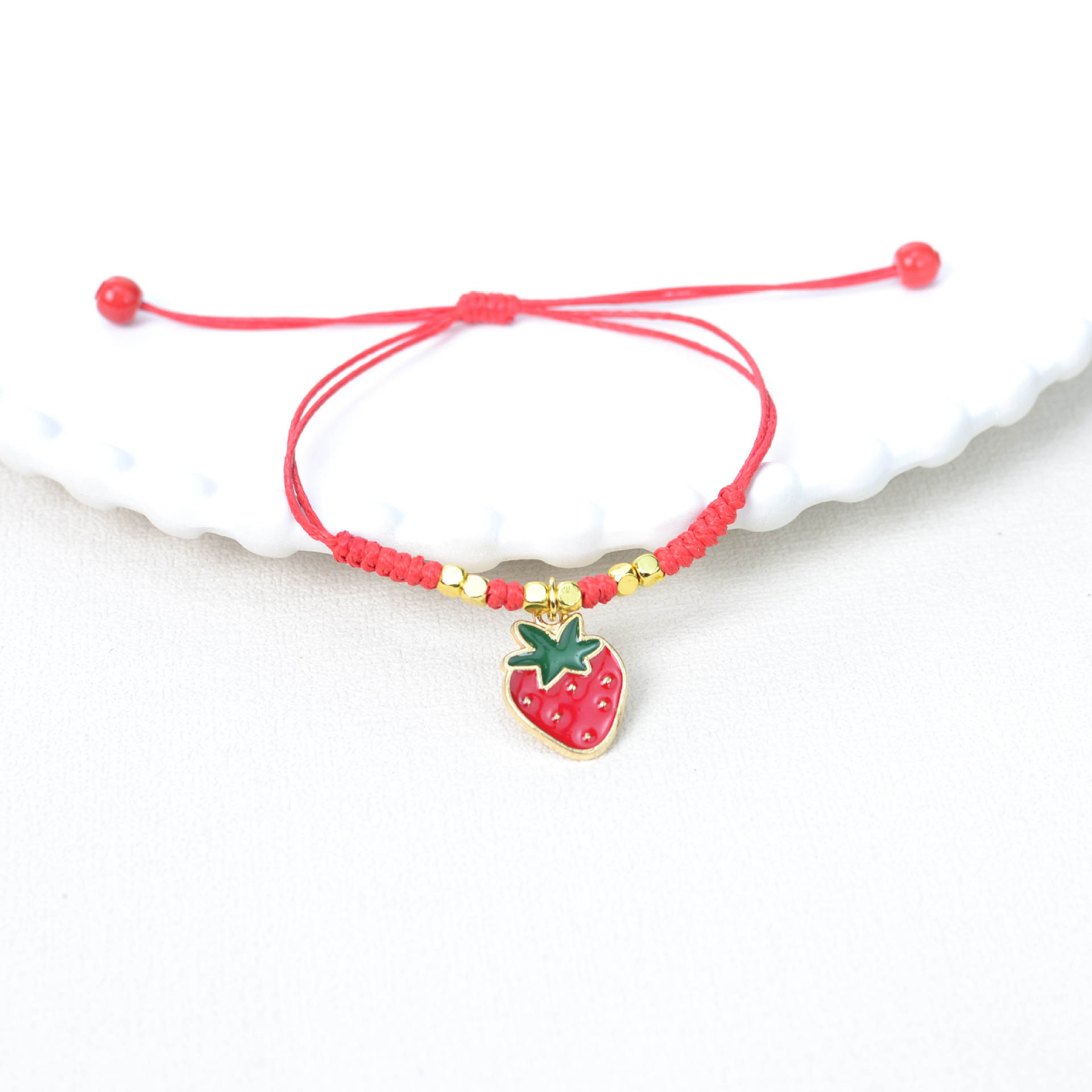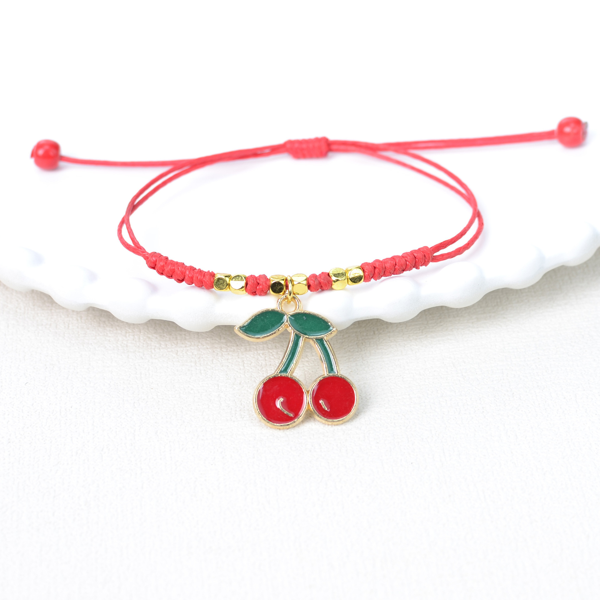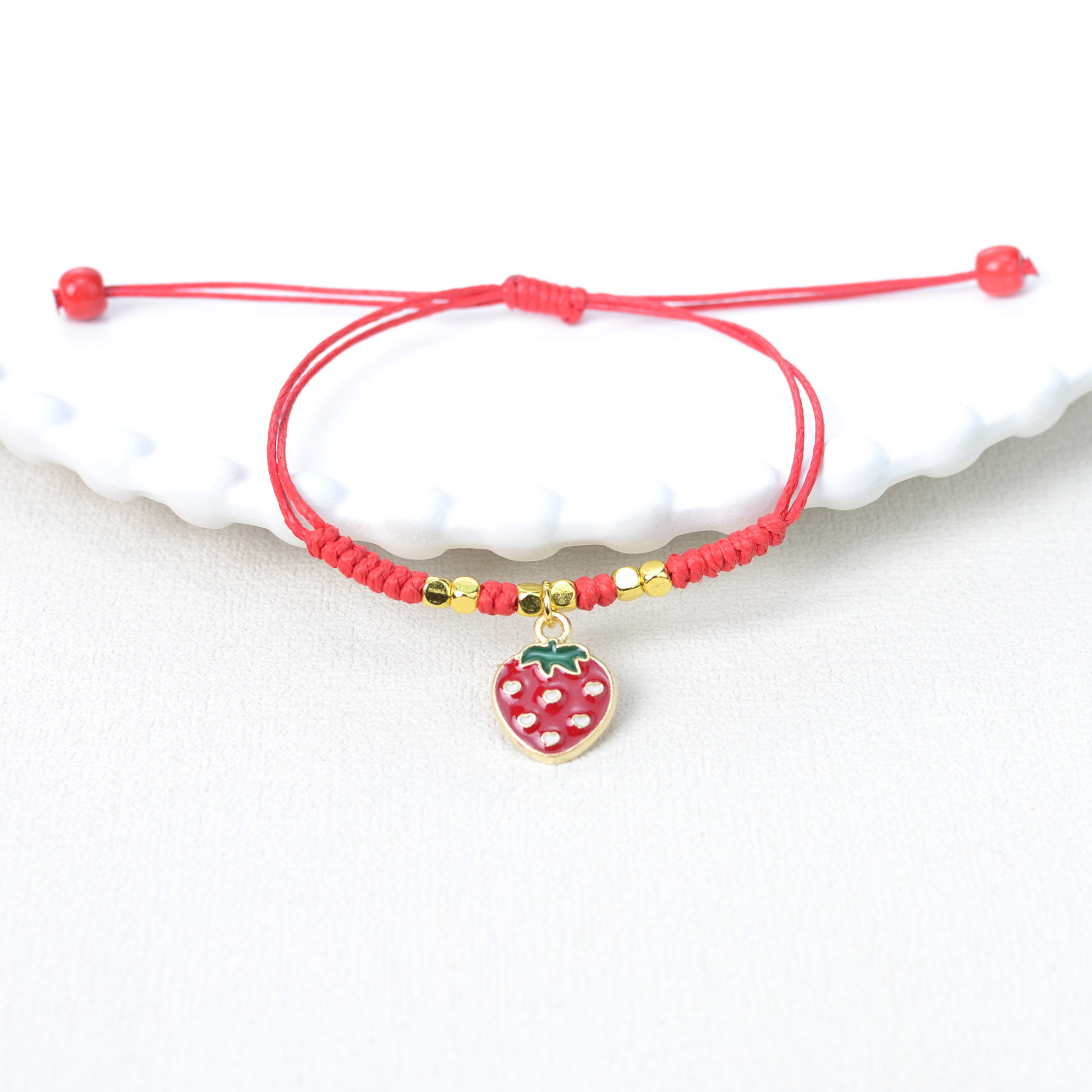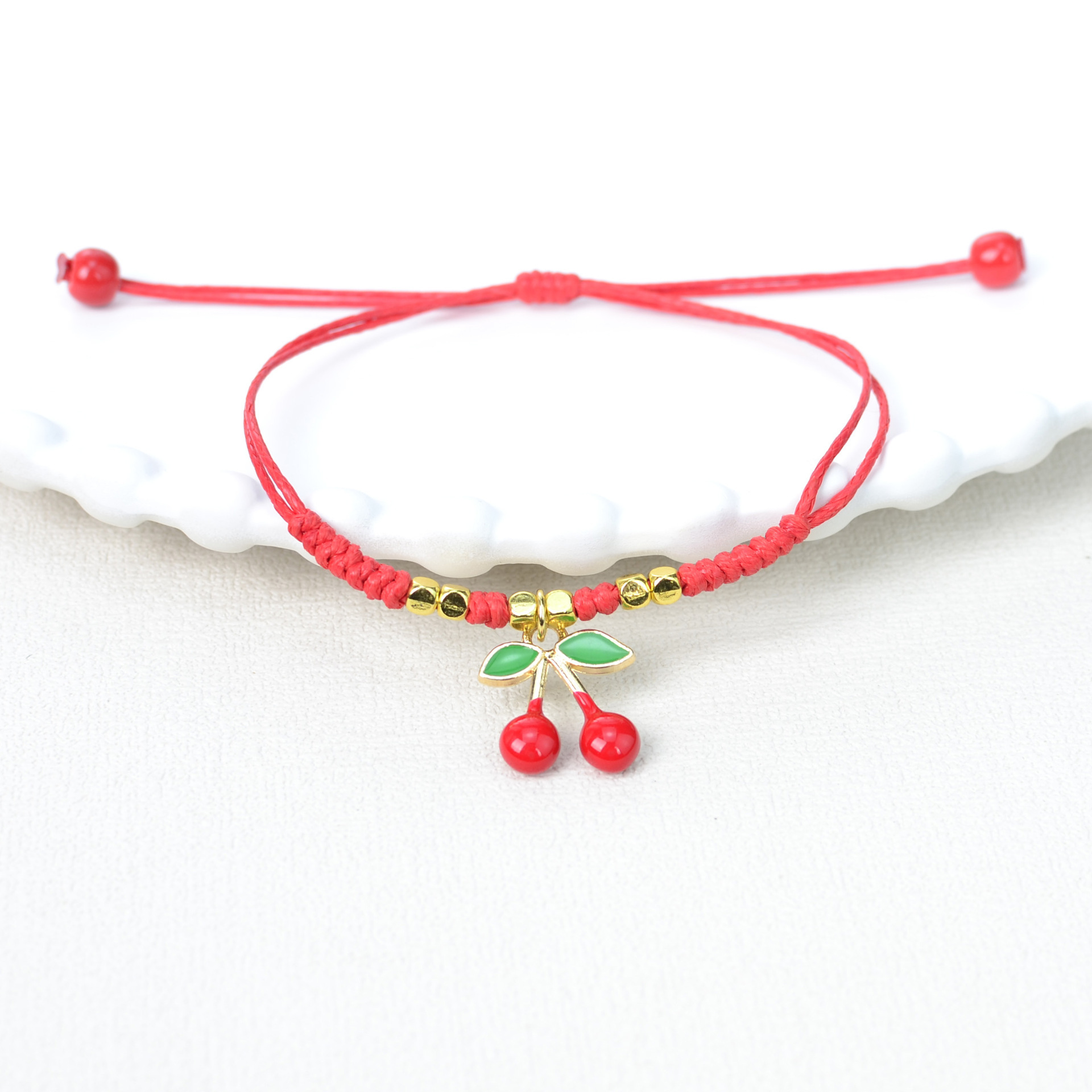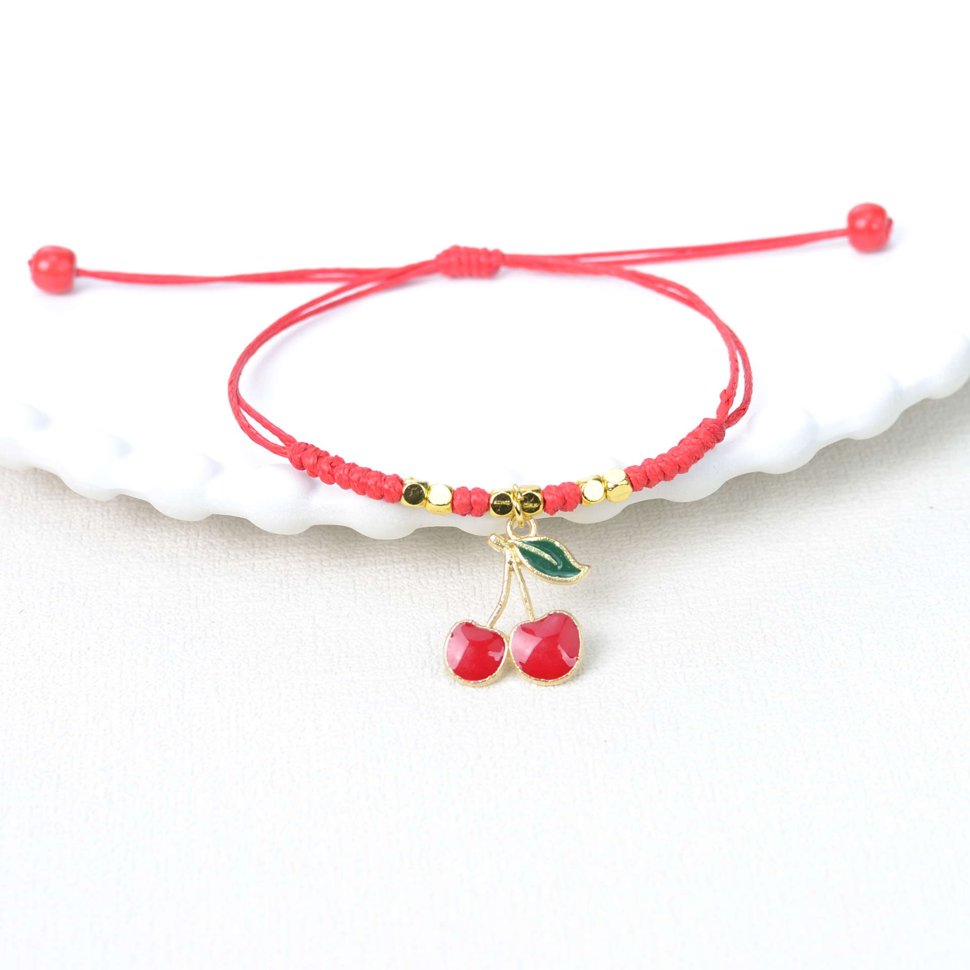 本命年赤縄カップルブレスレット女性diyいちごさくらんぼ手綱編み娘児童学生プレゼントアクセサリー