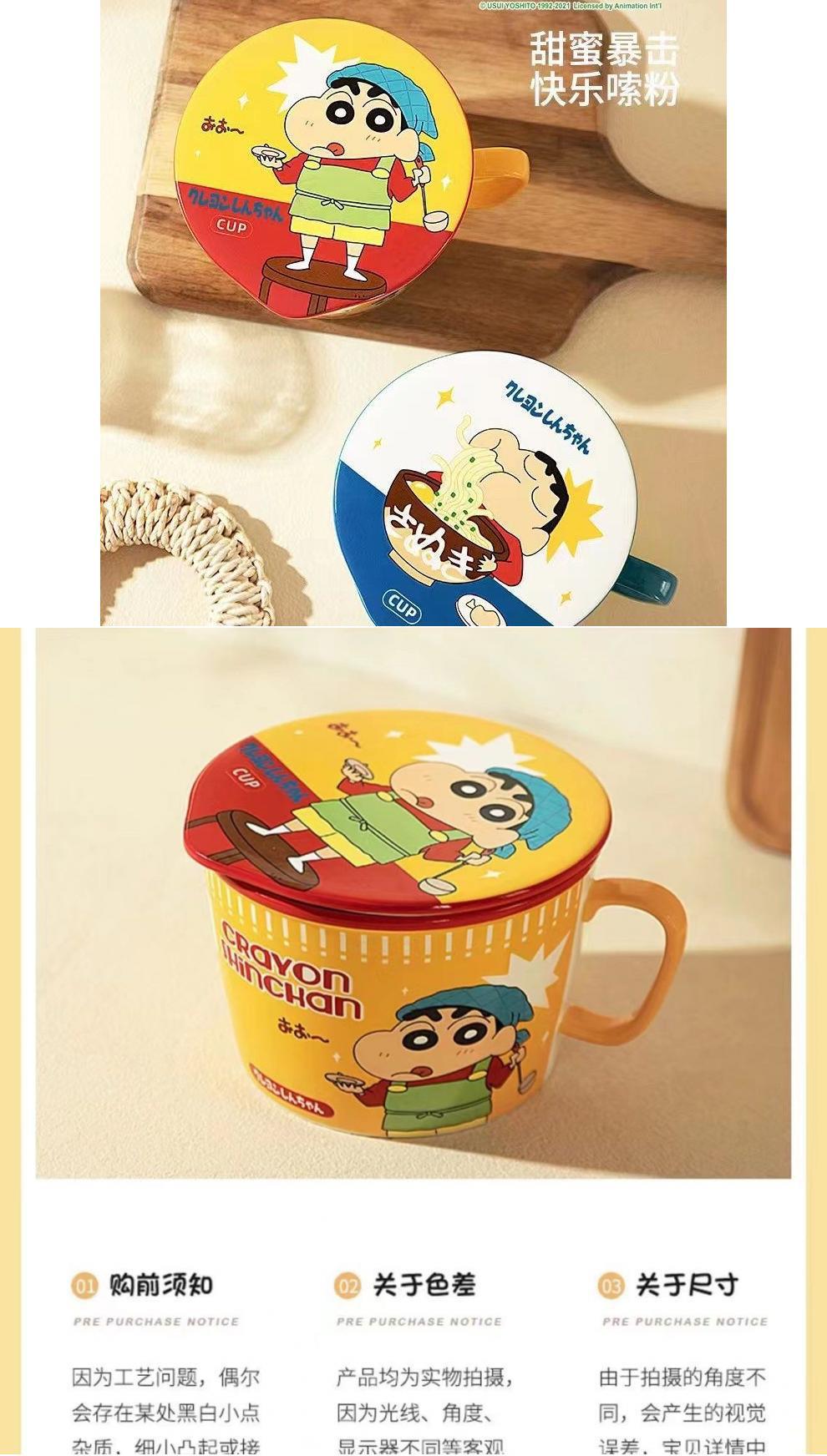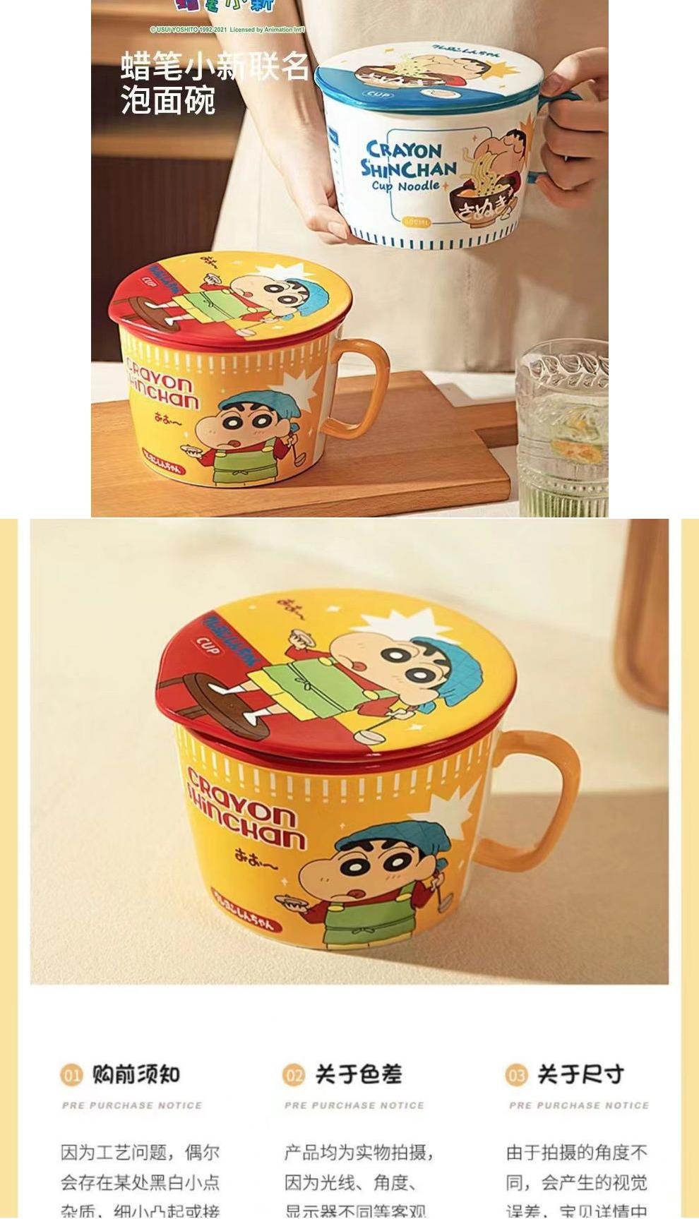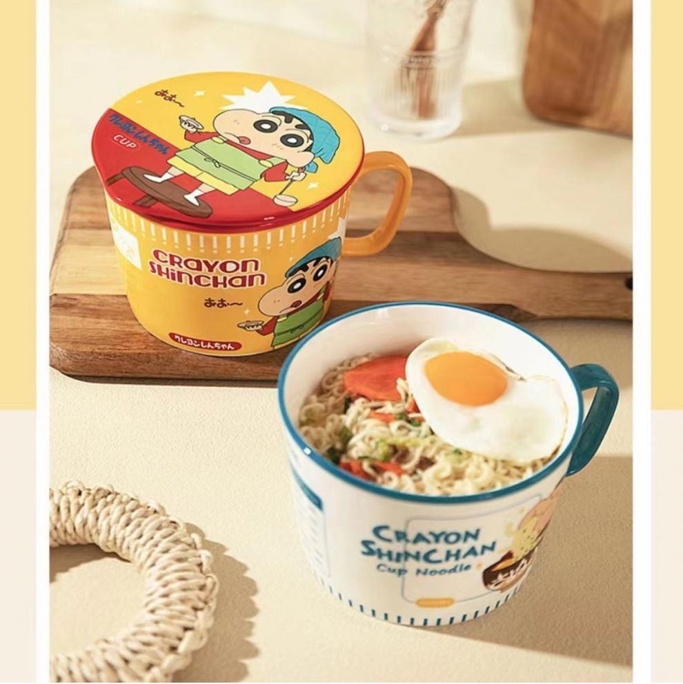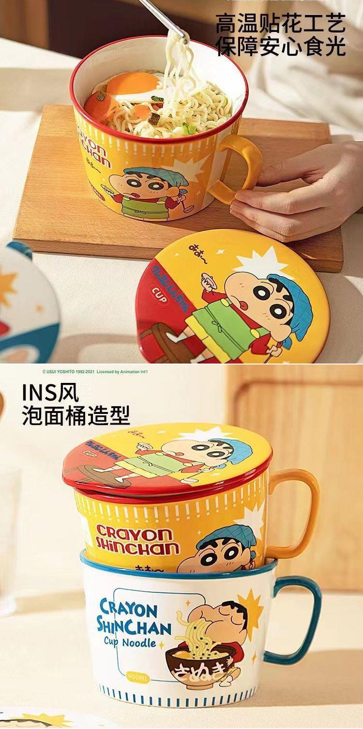 クレヨンしんちゃん インスタントラーメン 和風インスタントラーメンボウル ライスボウル カップ セラミック 学生寮用 かわいい 大型 蓋付き