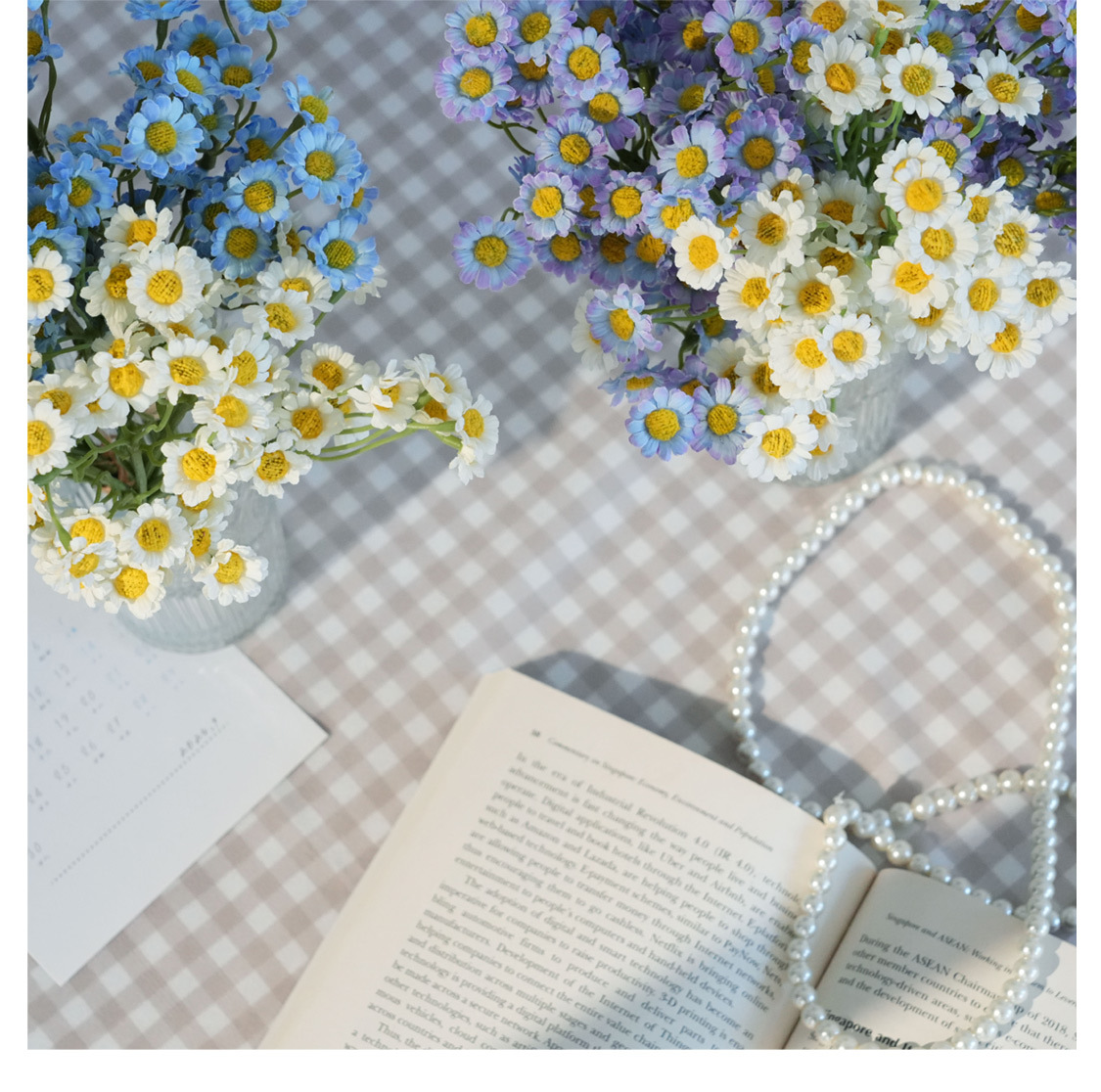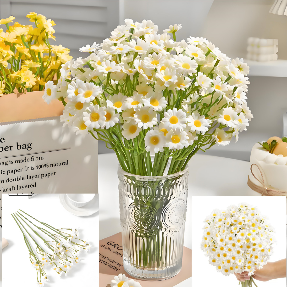デイジー造花シルクフラワー宴会テーブルシーン装飾、カモミール、小菊、造花、造花アート