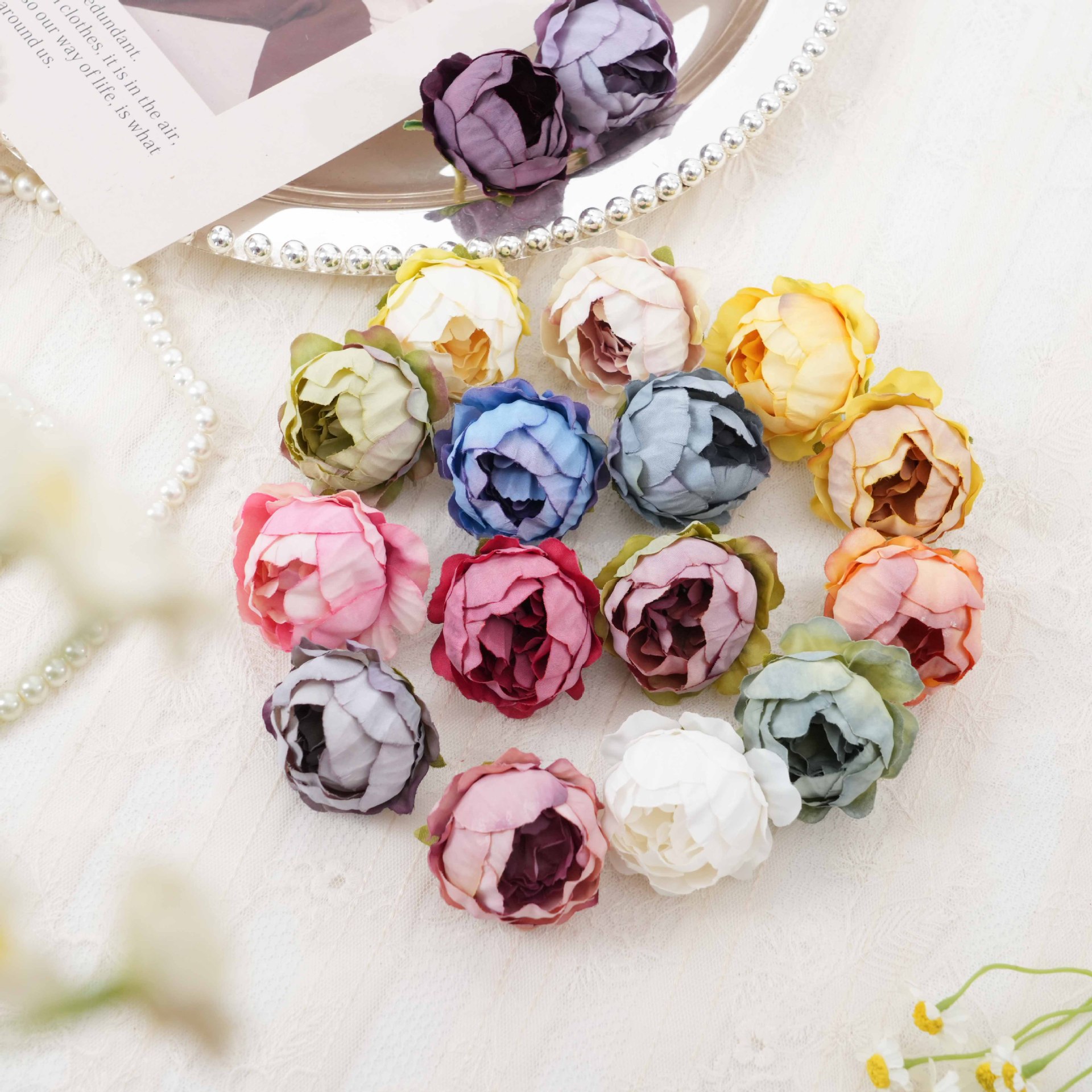 花の頭のバラのアイデアをシミュレーションして花の装飾品の写真を撮る道具が国境を越えてよく売れている造花