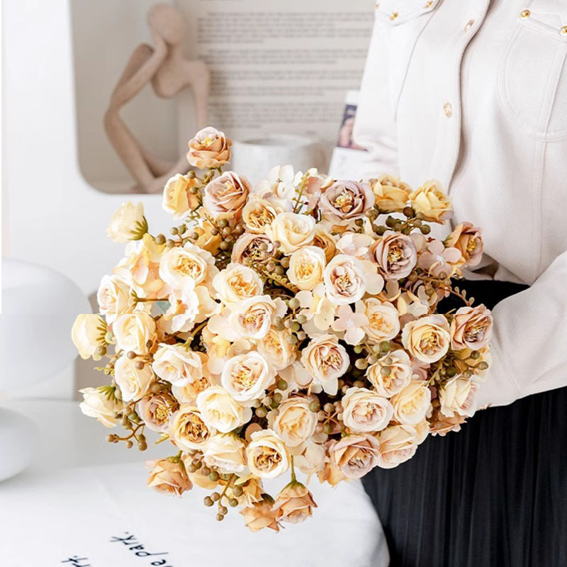 造花 エレガントなバラ 小花束 テーブルフラワー ホームデコレーション ホテルインテリア 花材 輸入人気商品 フェイクフラワー