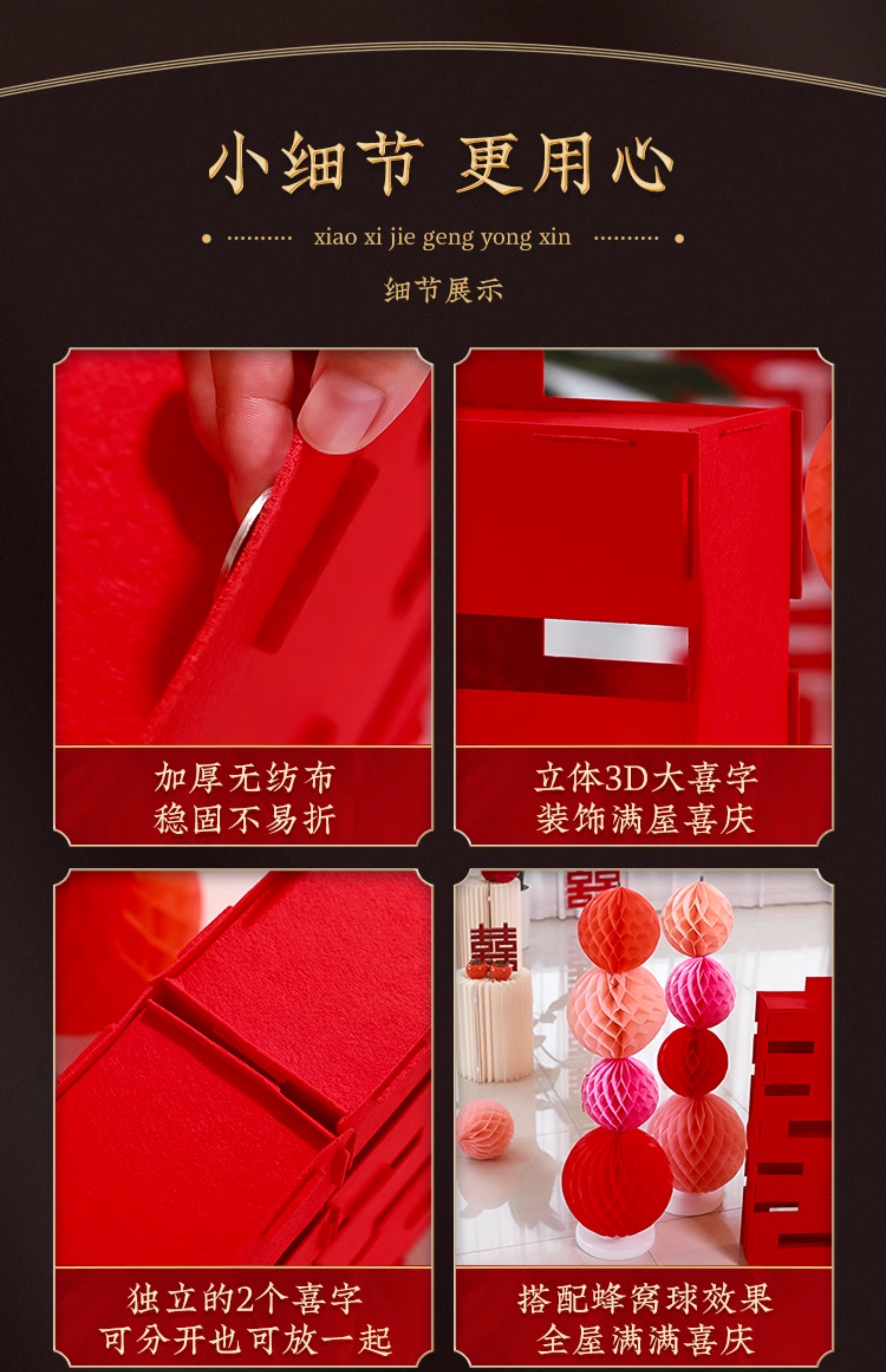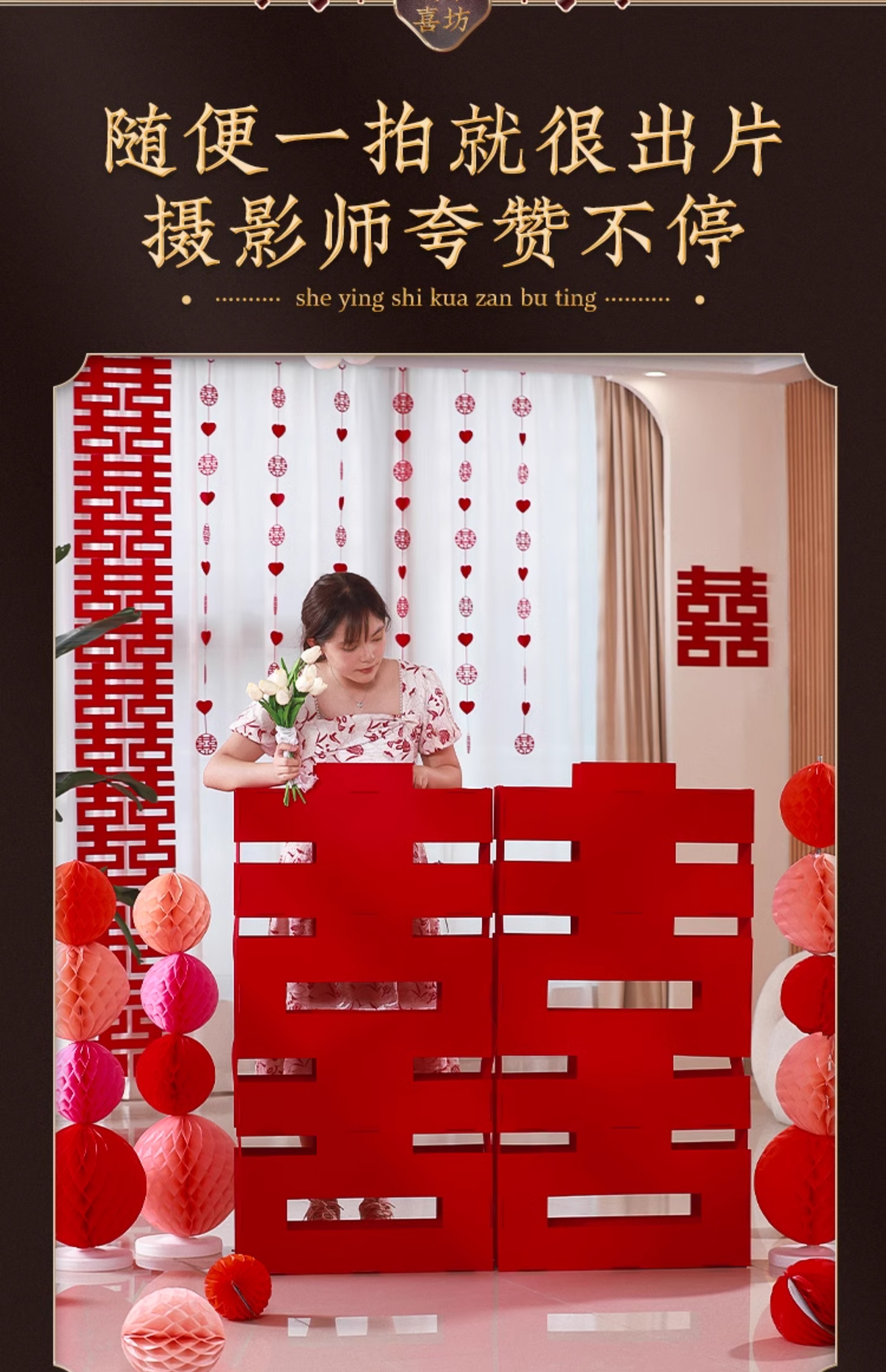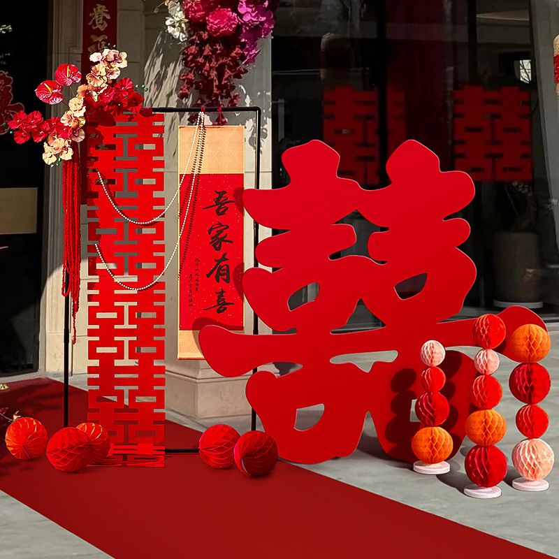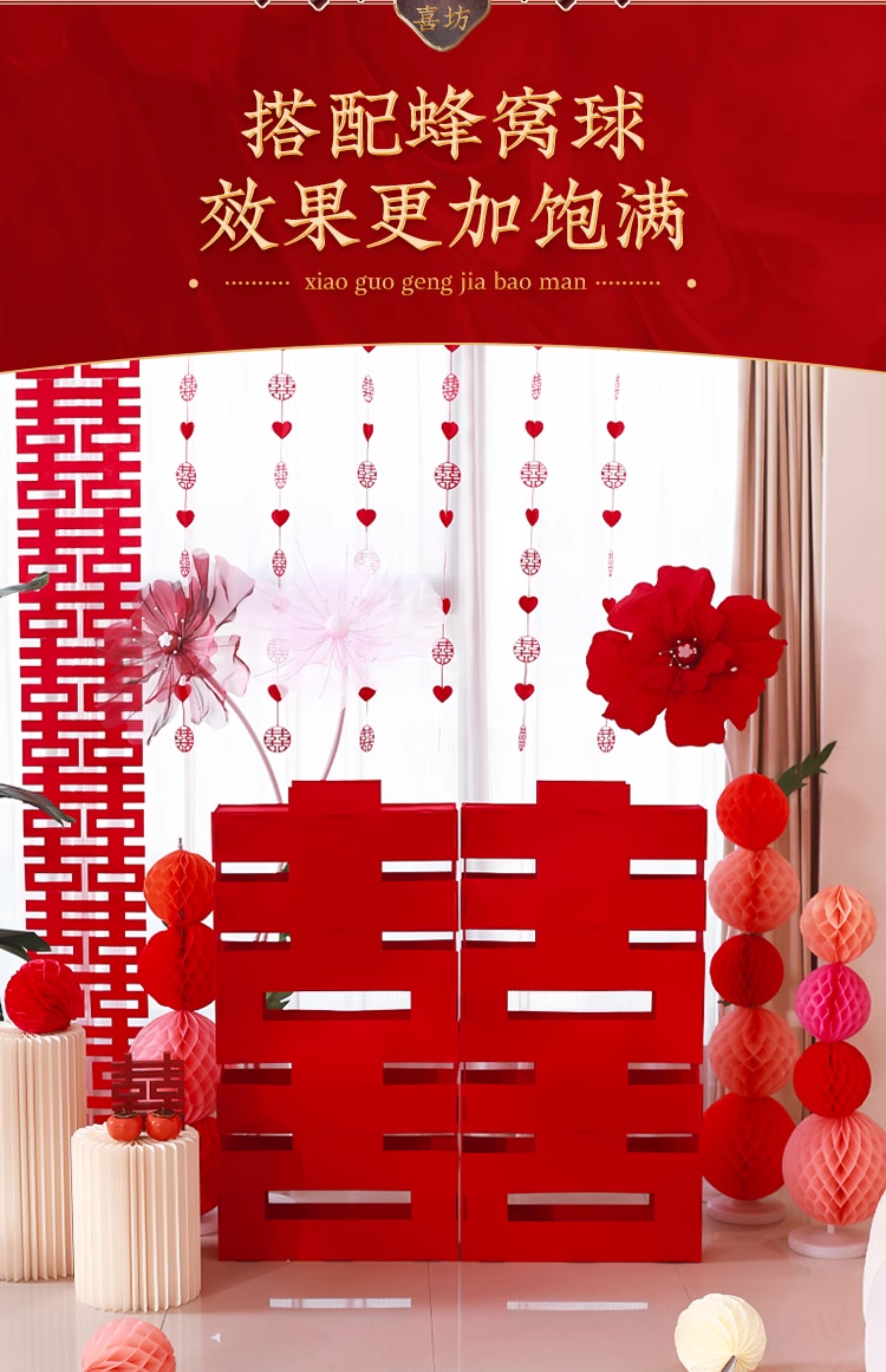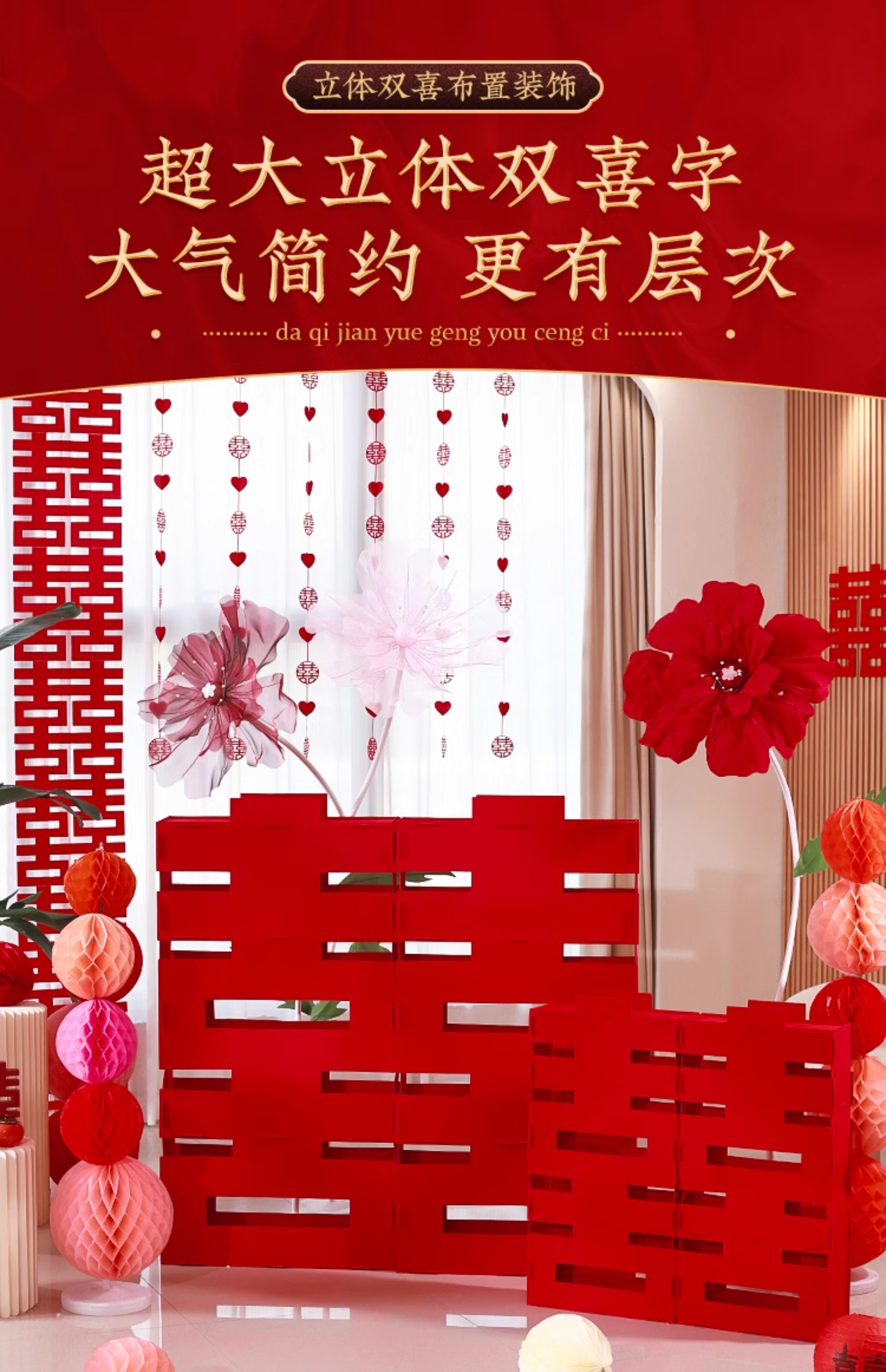 結婚用品の結婚部屋の装飾の大喜字の背景の壁のネットの赤い喜の玄関の窓の花の卸売りの直接販売の結婚式の配置