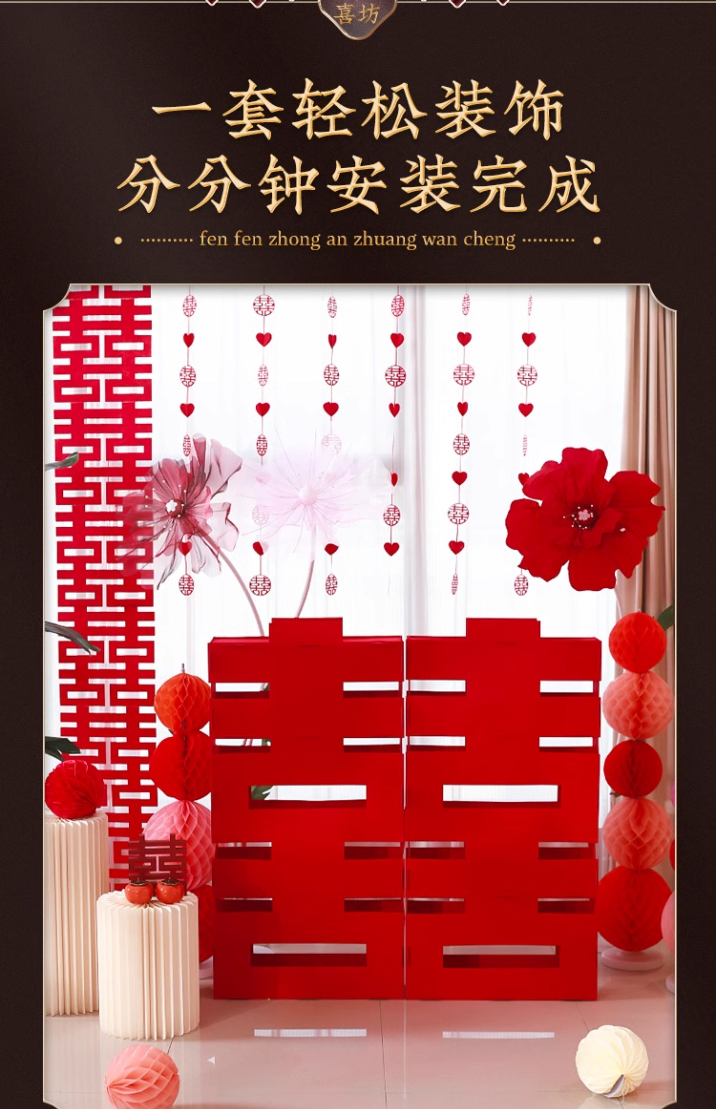 結婚部屋の配置セット結婚喜字扇花結婚式男性側新居客間寝室装飾結婚祝いカラー扇花