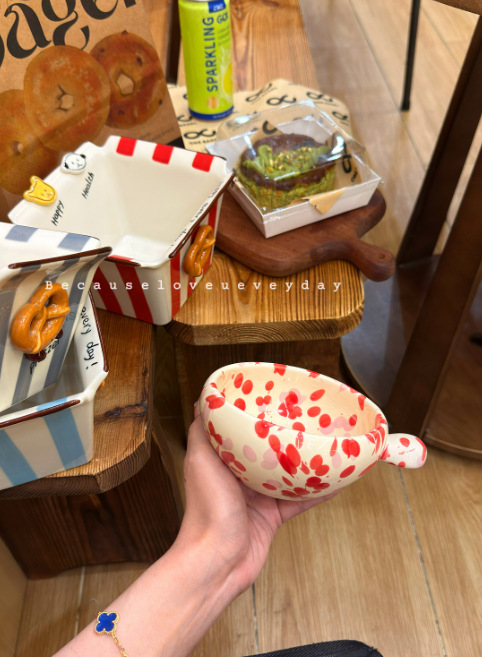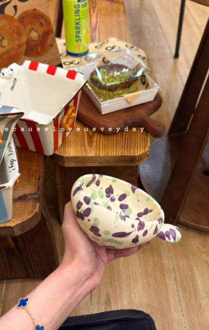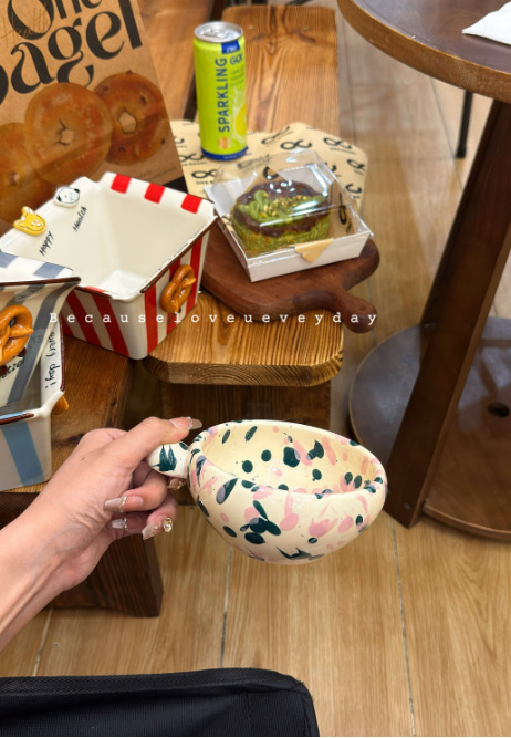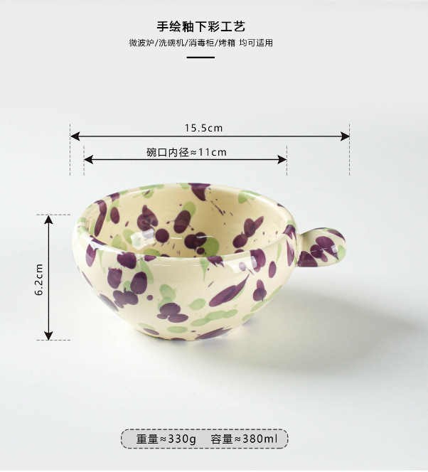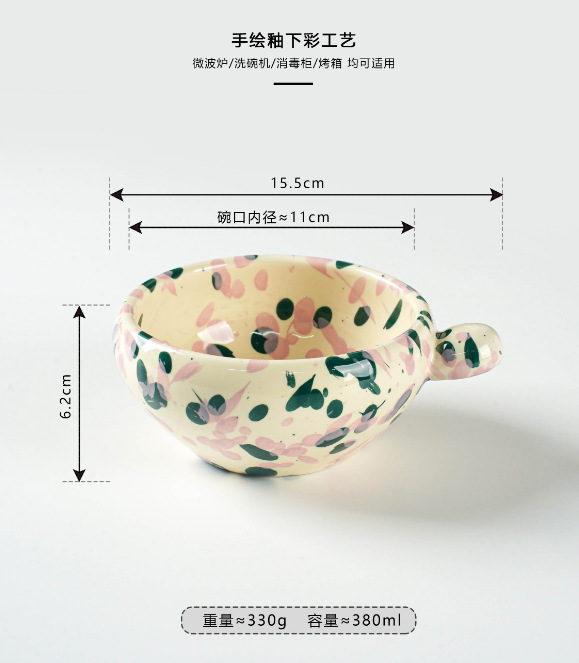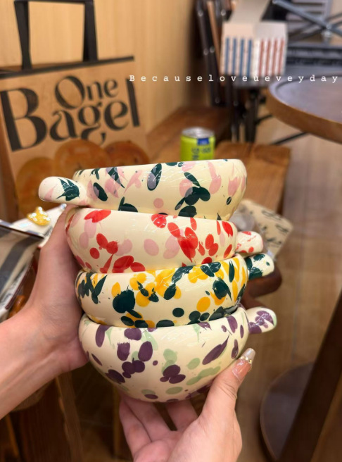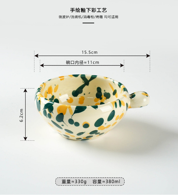 2025 新 ins シンプルなスプラッシュインクバブル 5inch 片耳ボウルライスボウルフルーツサラダボウル朝食ボウル