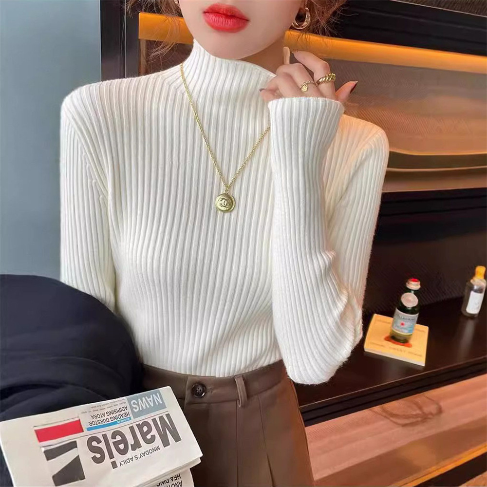 ハーフタートルネックセーターレディースボトリングシャツレディース秋冬厚みのある2025新しいインナーホワイトトップニットスリムスタイル