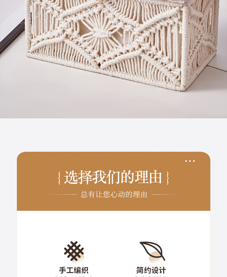 アマゾンのティッシュケースの手編み北欧の家庭用日常置物収納ケースの綿紐編み引き出し箱