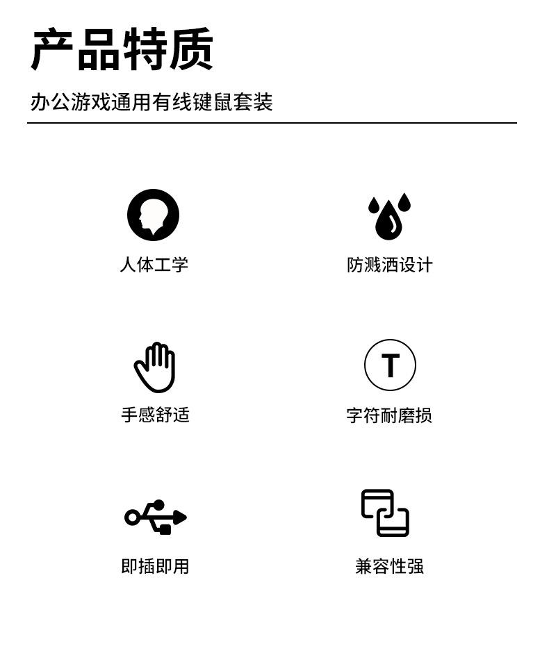 Amazon クロスボーダー スポット有線キーボードとマウス セット人間工学に基づいたオフィス ホーム コンピューター周辺機器防水