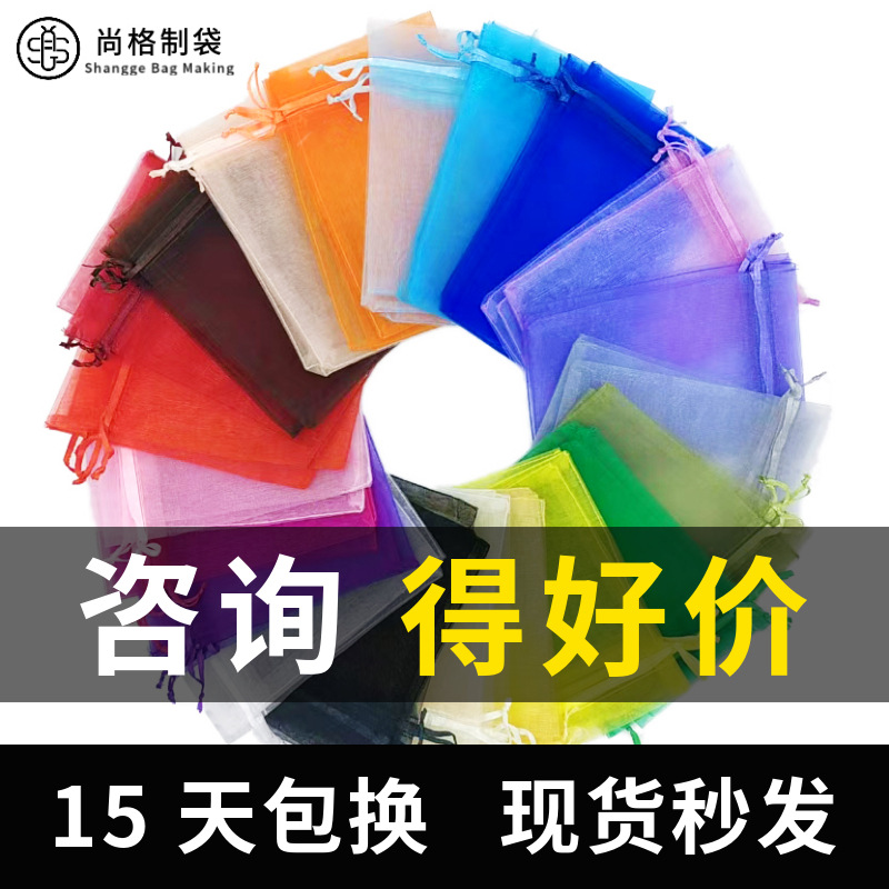 現物卸売り純色欧根紗束ポケット化粧品アクセサリー包装袋アクセサリープレゼント網紗袋喜糖袋