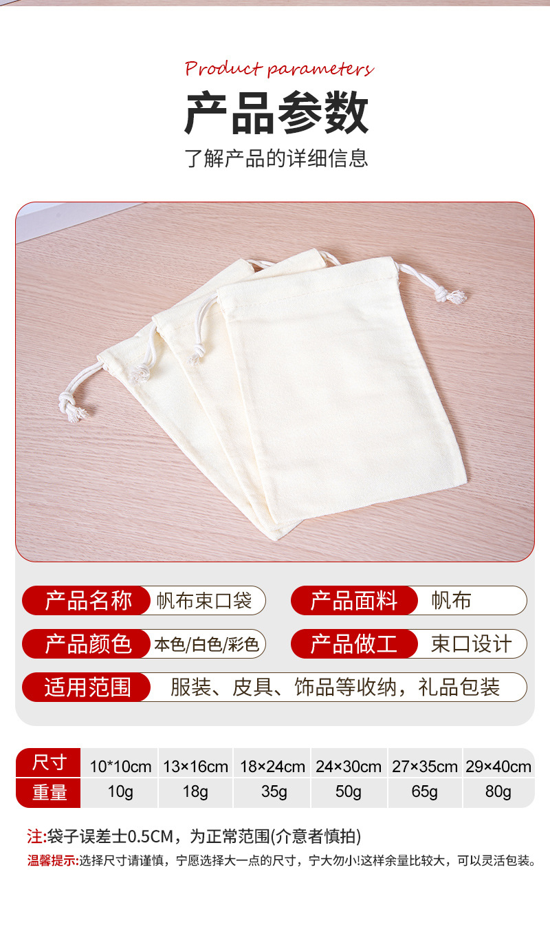 キャンバスポケットカスタムロゴスポット空白綿布巾着袋防塵収納袋プレゼント広告キャンバスバッグ