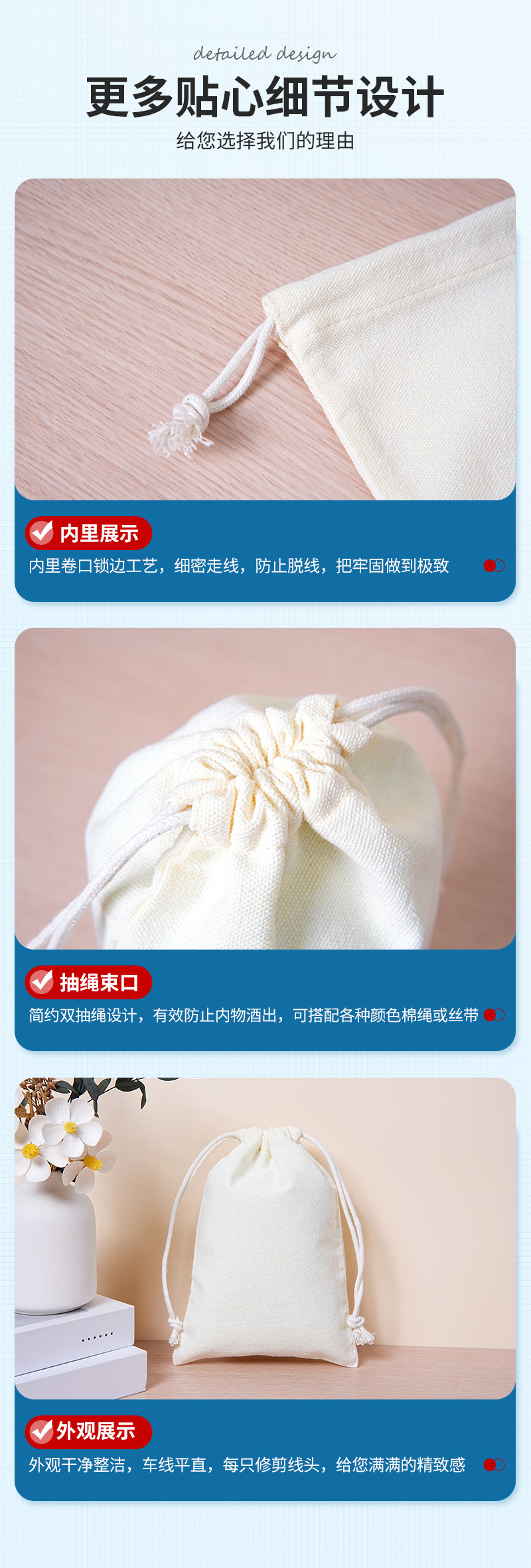 棉布束口袋 抽绳束口袋棉麻收纳布抽绳布袋小布袋 棉麻束口袋定制