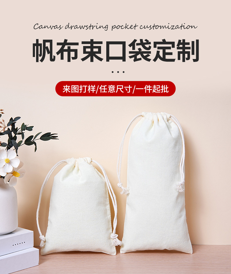 巾着ポケットキャンバスロープ環境に優しい包装袋収納印刷可能なロゴお土産包装防塵小さな布袋卸売