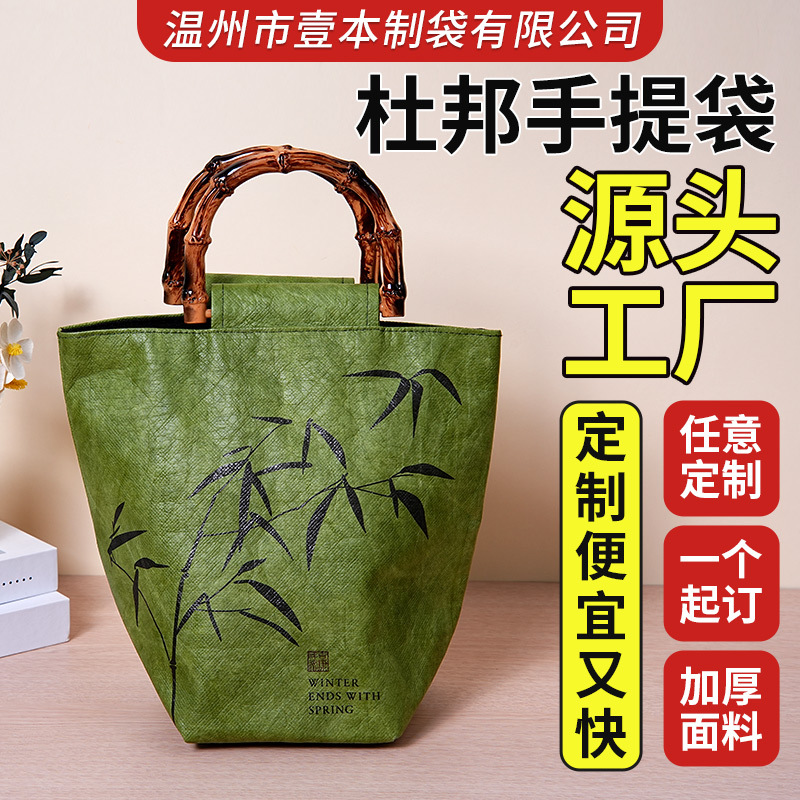 デュポン紙袋カスタム印刷ロゴ斜めハンドヘルドキャンバスバッグ洗えるクラフト紙袋カスタムメイド