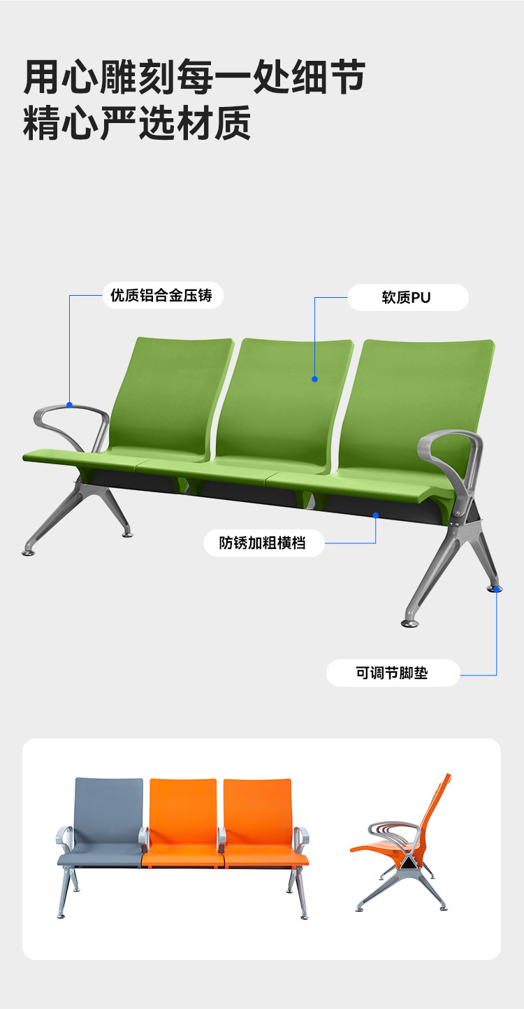 PU空港列椅子、病院待合椅子、高速鉄道駅椅子、公共家具のカスタマイズ