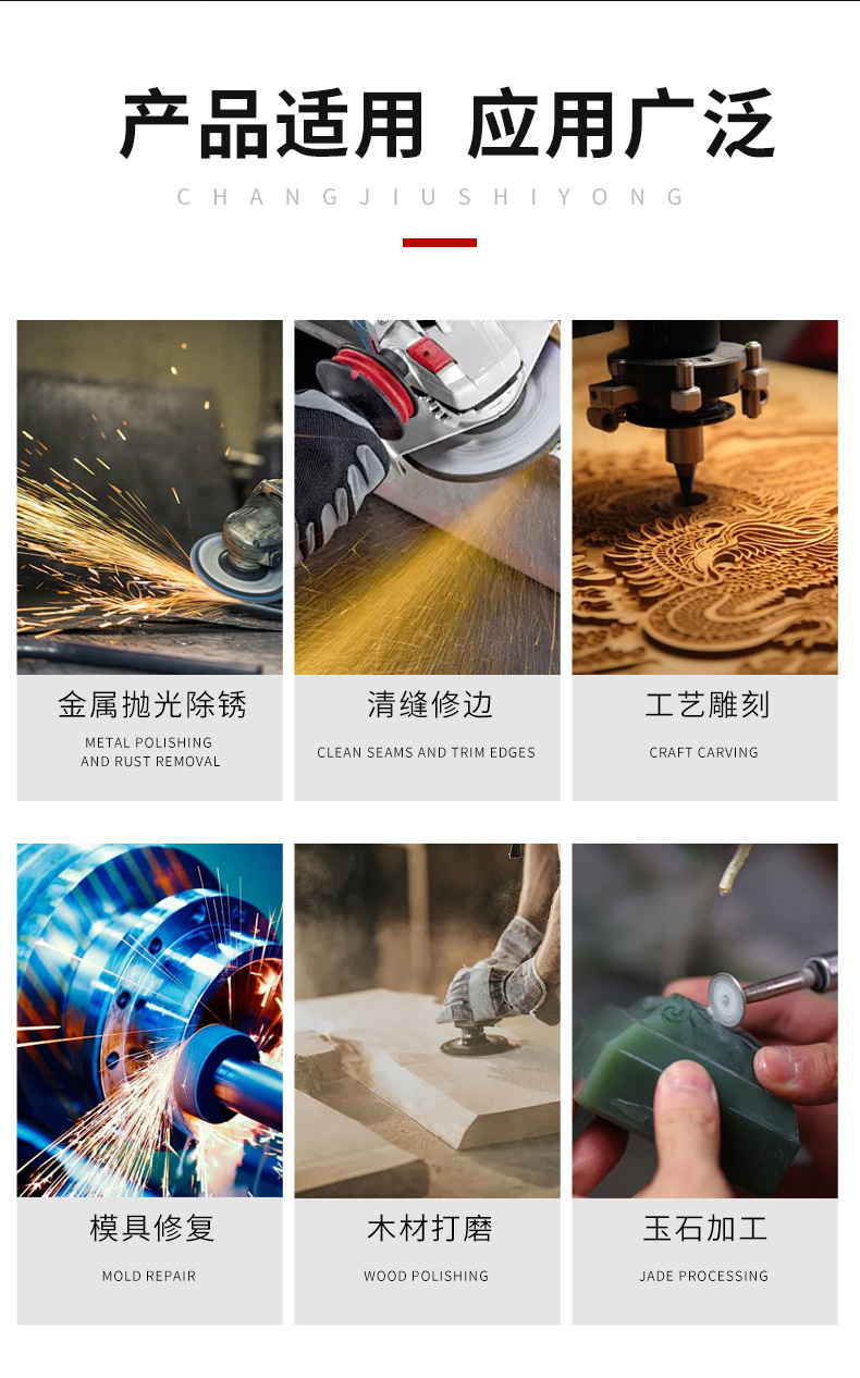 适用对象 金属抛光/清缝修边/工艺雕刻/模具修复/木材打磨/玉石加工
