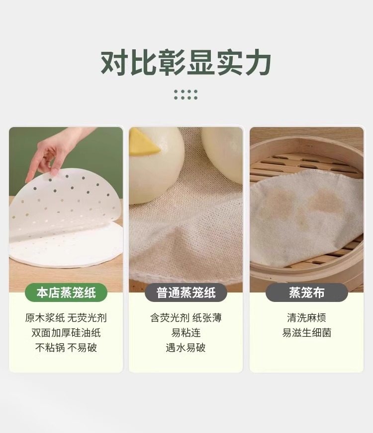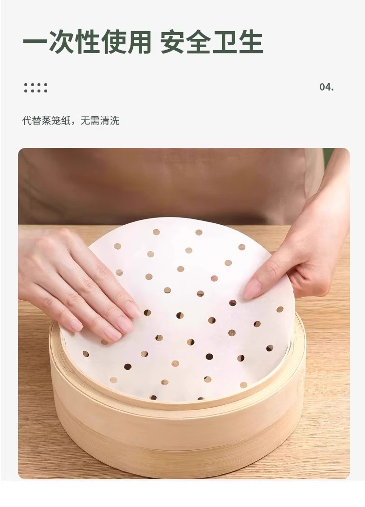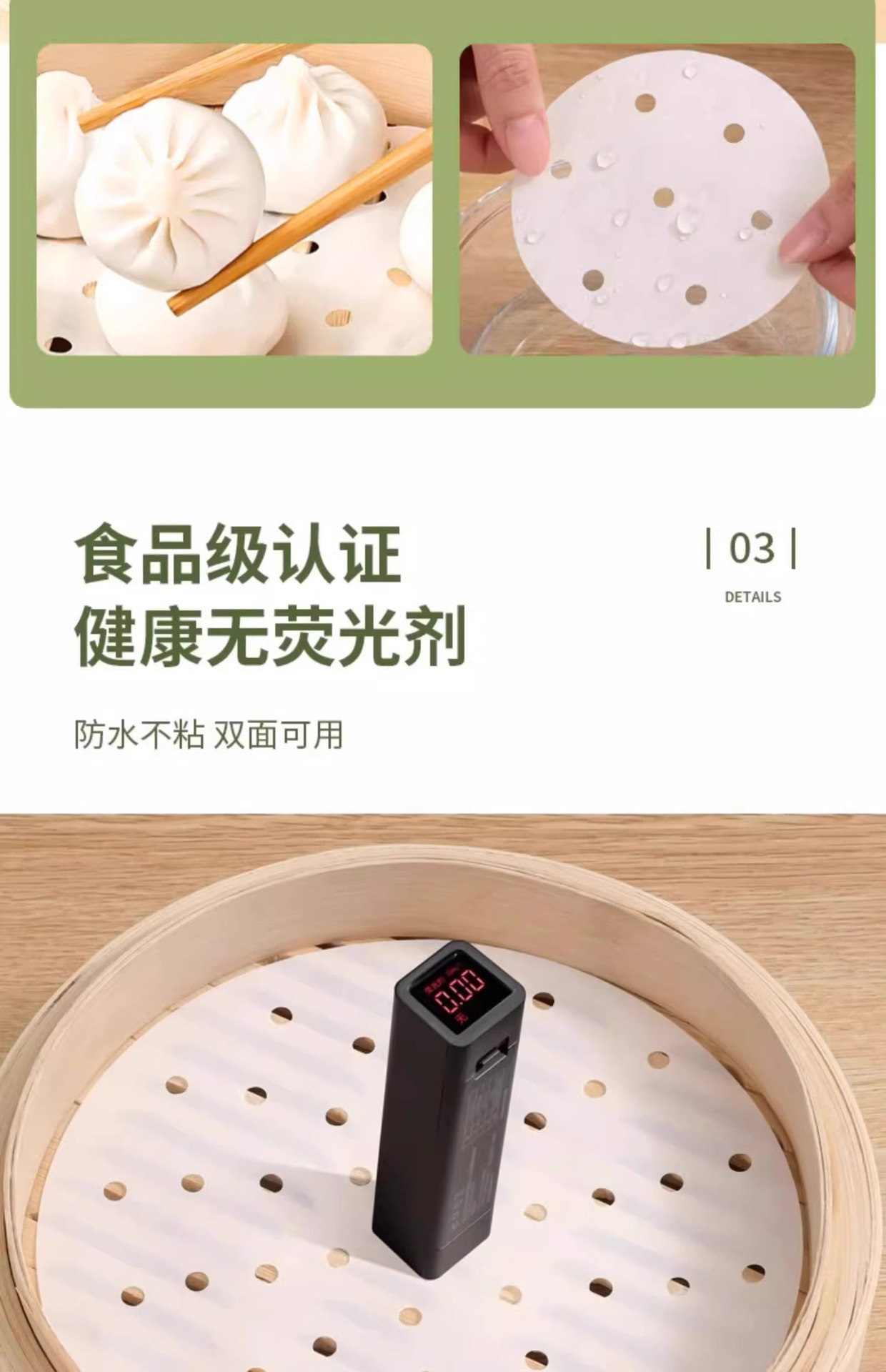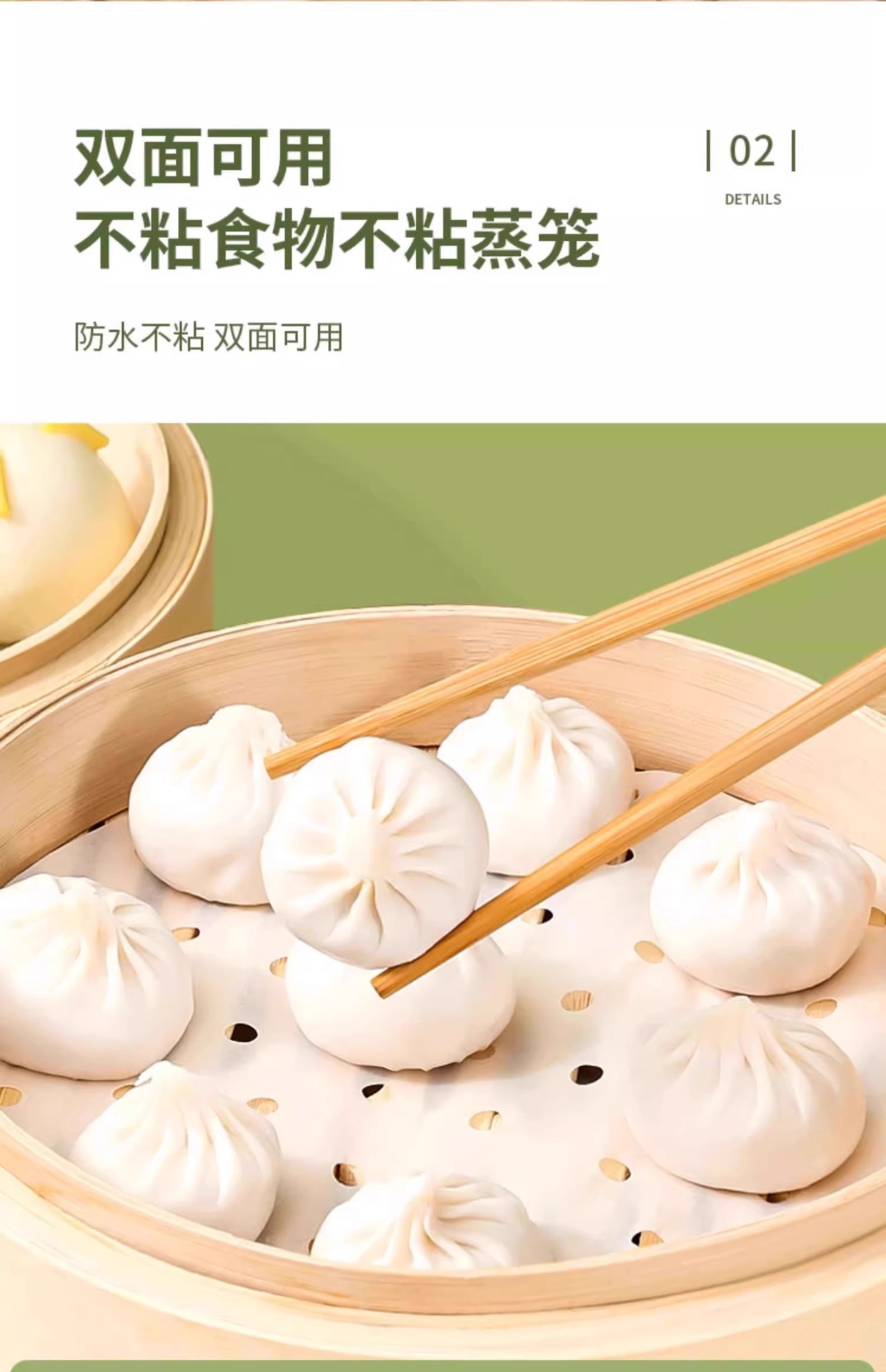 メーカー卸売使い捨て蒸し器紙パッド、饅頭紙、丸型シリコーンオイル蒸し器紙、ノンスティック耐蒸し紙