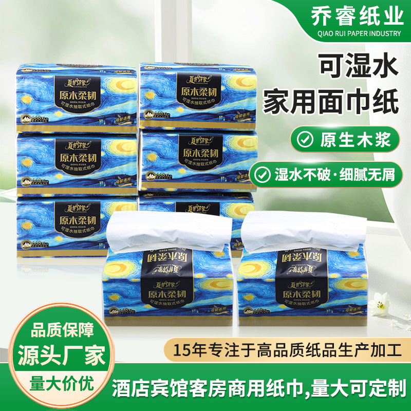 業務用白パックティッシュペーパーホテルktvホテル家庭用50枚入り水に濡れる大容量透明包装白パックティッシュペーパー