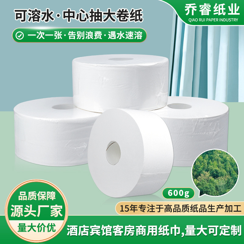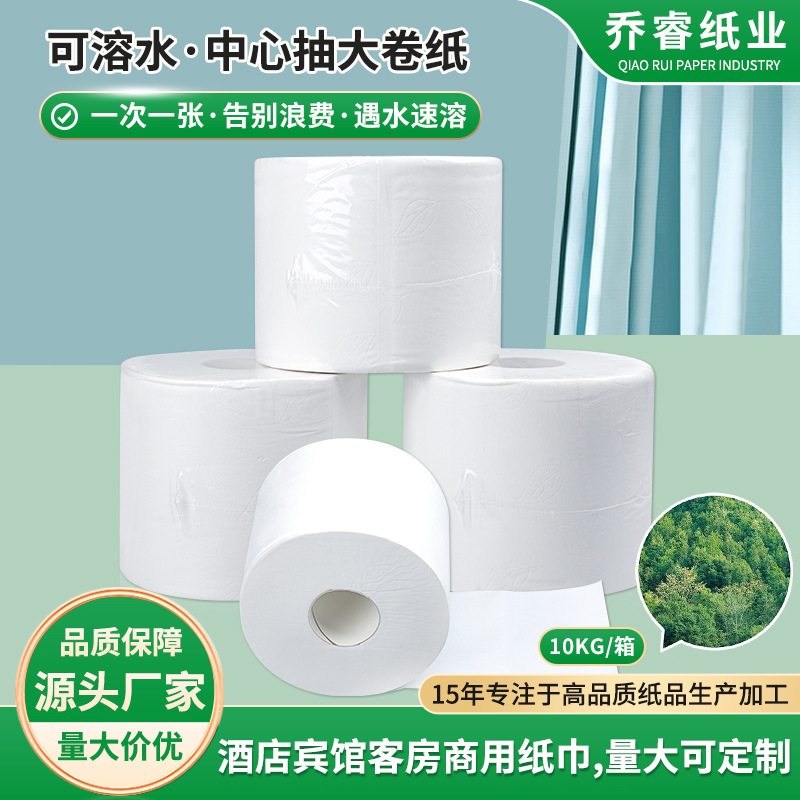 スポット大型紙全箱卸売ホテルトイレ商業可溶性水中空ロール大型ロールトイレットペーパー
