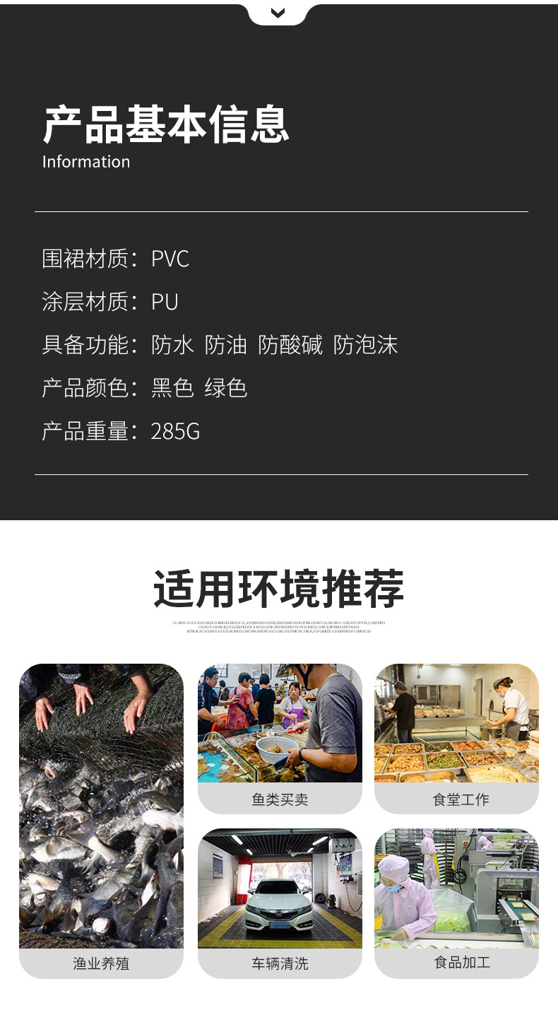 PVC黑色防水防油加厚食堂餐饮厨房耐酸碱加长水产家用男女围裙