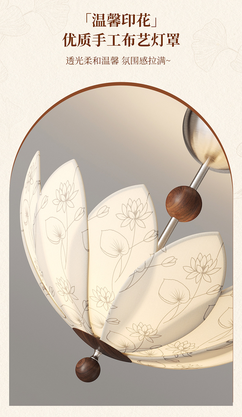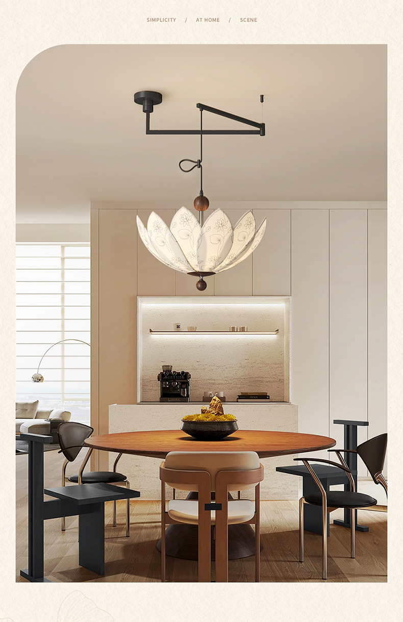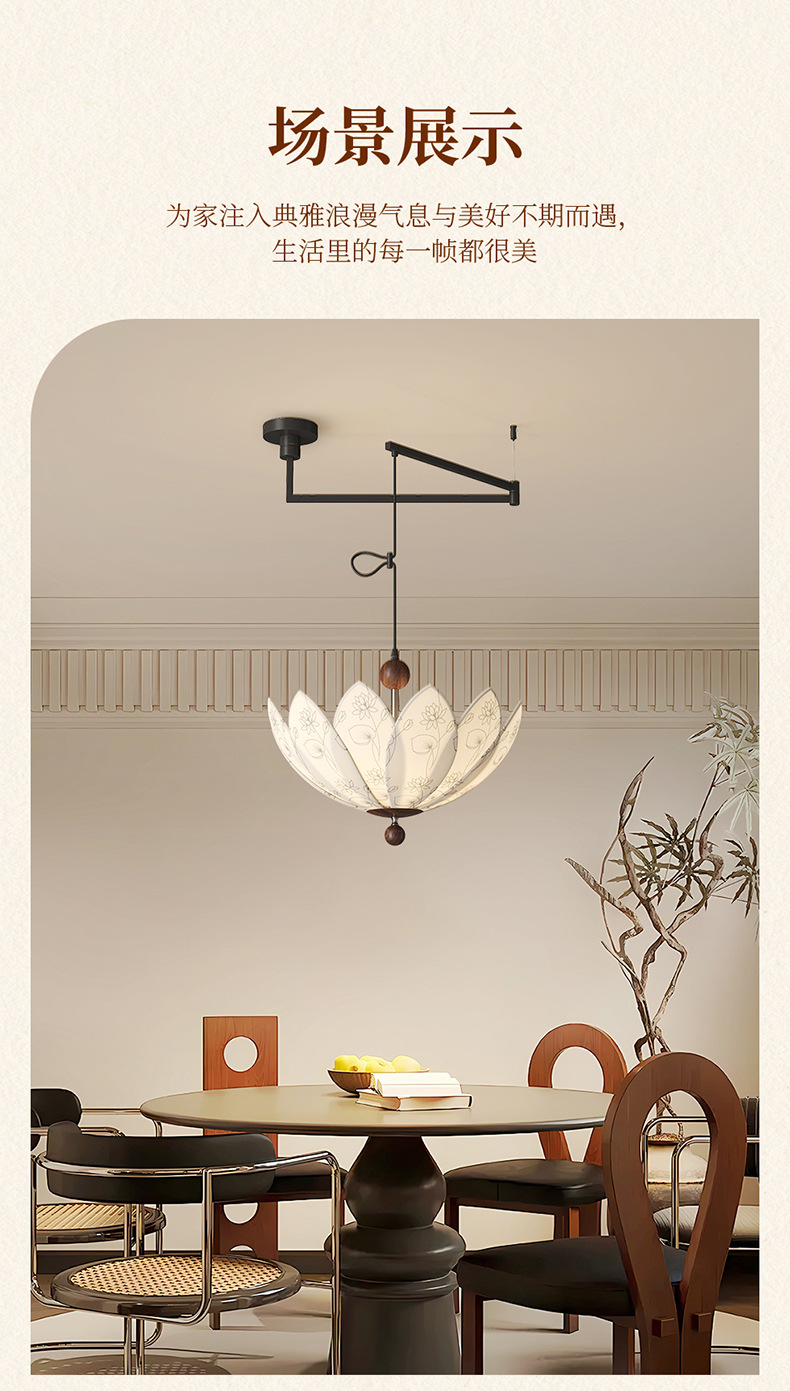 中世スタイルの可動ロッカーアーム回転レストランシャンデリア 2025 新しいプリント生地クリエイティブ蓮寝室ランプ