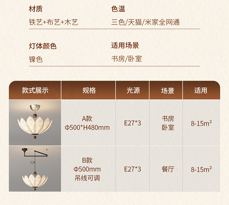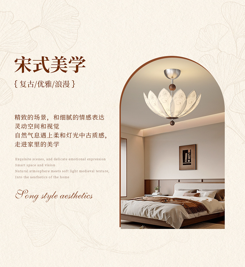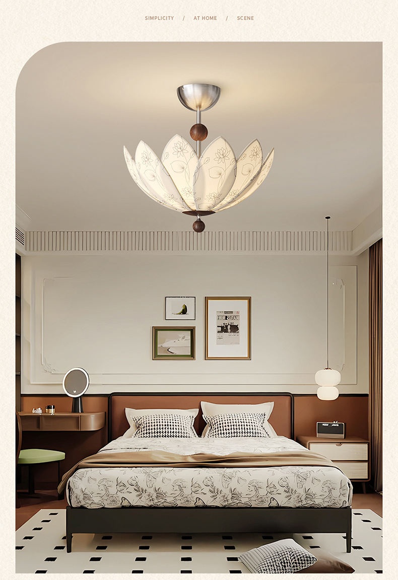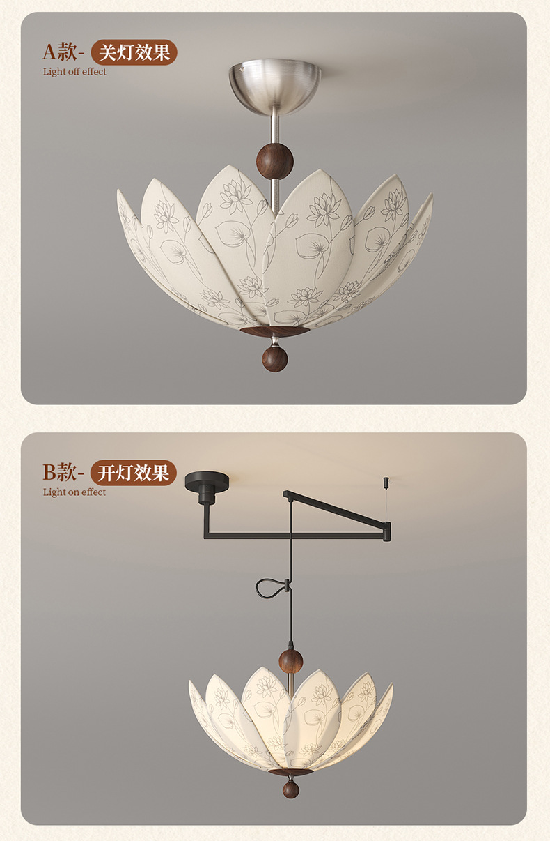 中世スタイルの可動ロッカーアーム回転レストランシャンデリア 2025 新しいプリント生地クリエイティブ蓮寝室ランプ