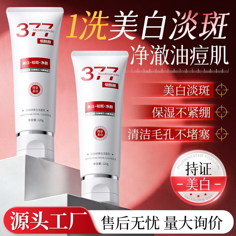 377美白祛斑洁面乳清洁毛孔不拔干净黑头亮肤色烟酰胺美白洗面奶