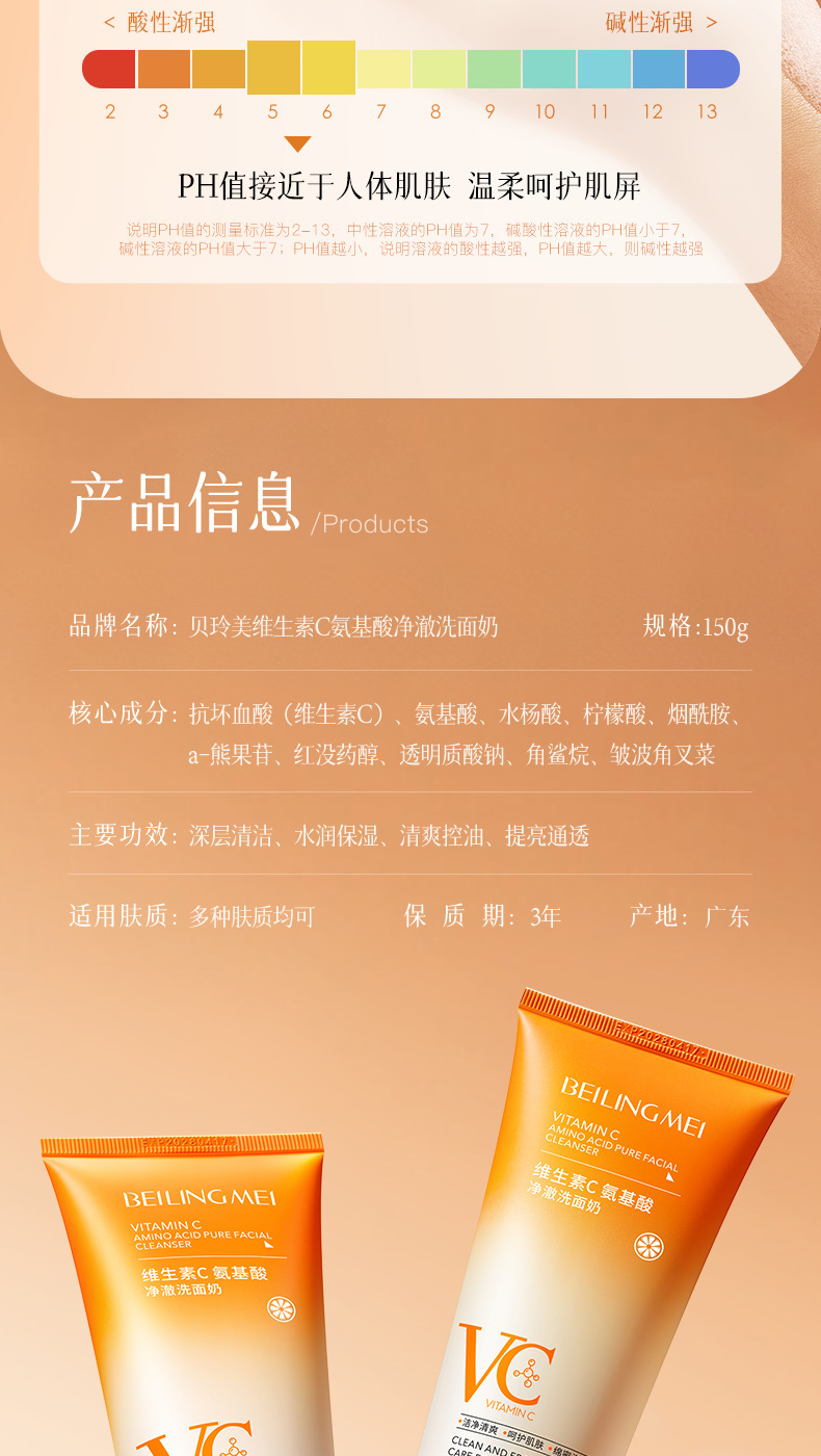 製品仕様 ベイリンメイ ビタミンCアミノ酸ピュリファイング洗顔料 150g