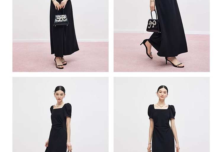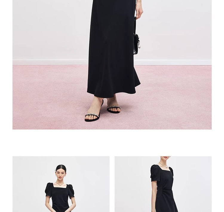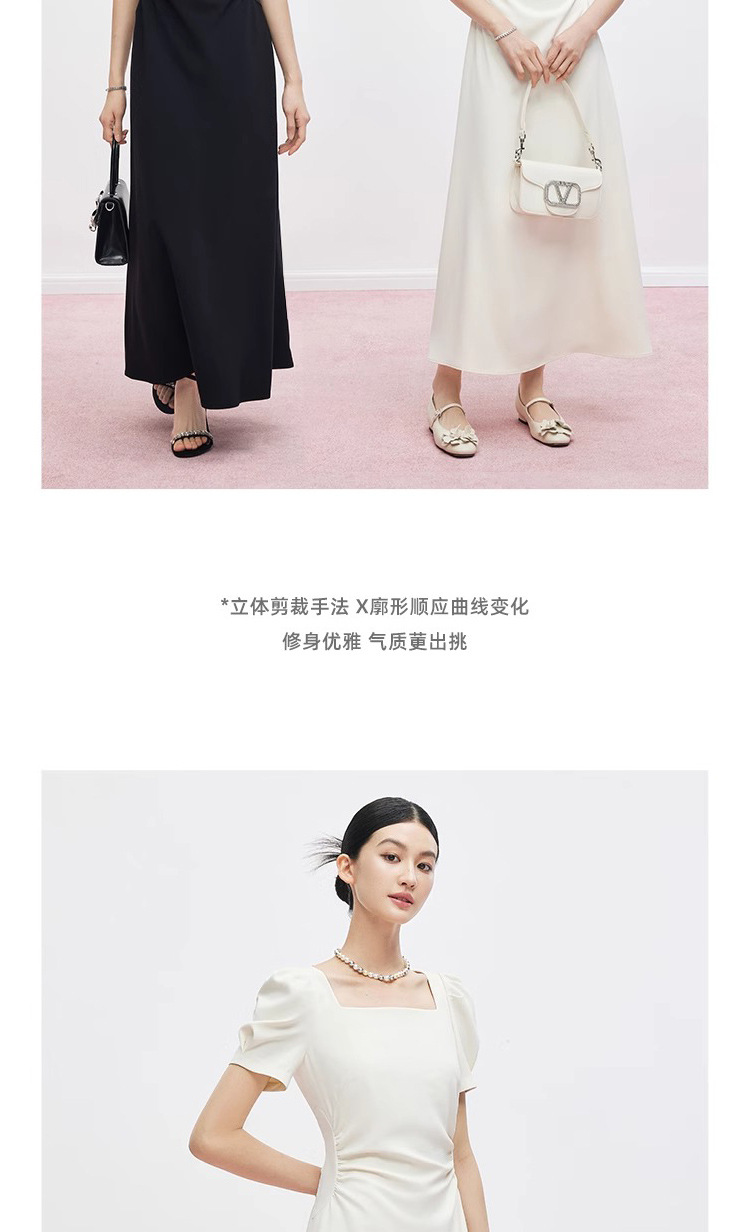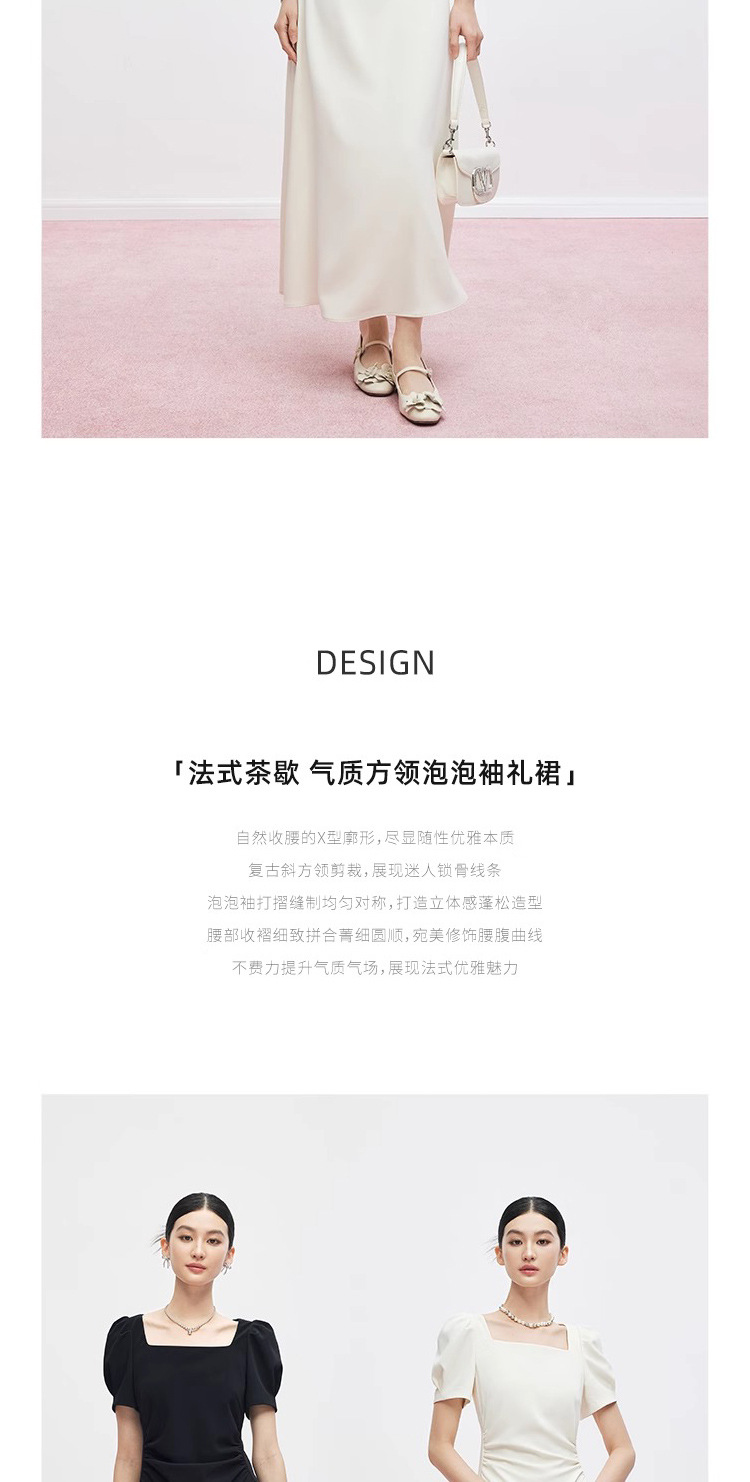 フレンチスタイルパフスリーブプリーツドレス女性のための2025夏の気質スクエアネックエレガントなハイエンドドレススカート