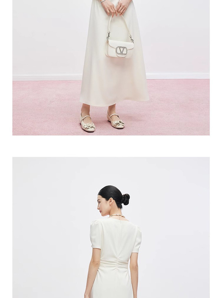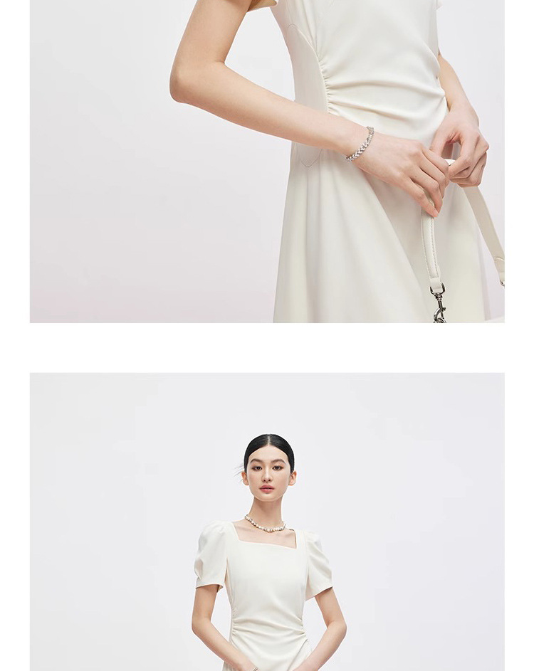 優雅で腰が高くて膝が白い袖なしの小さい丸首の白いベストのワンピースの気質が流行しています。