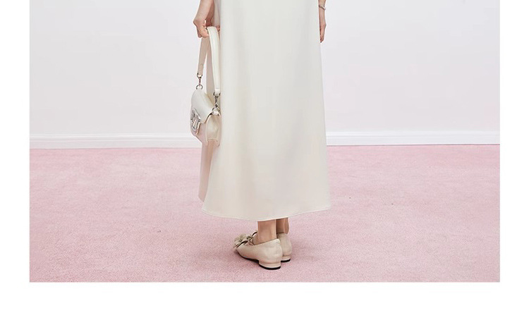 フレンチサテンノースリーブ登録ドレス2025夏新作ラウンドネックウエストハイエンド婚約ドレス