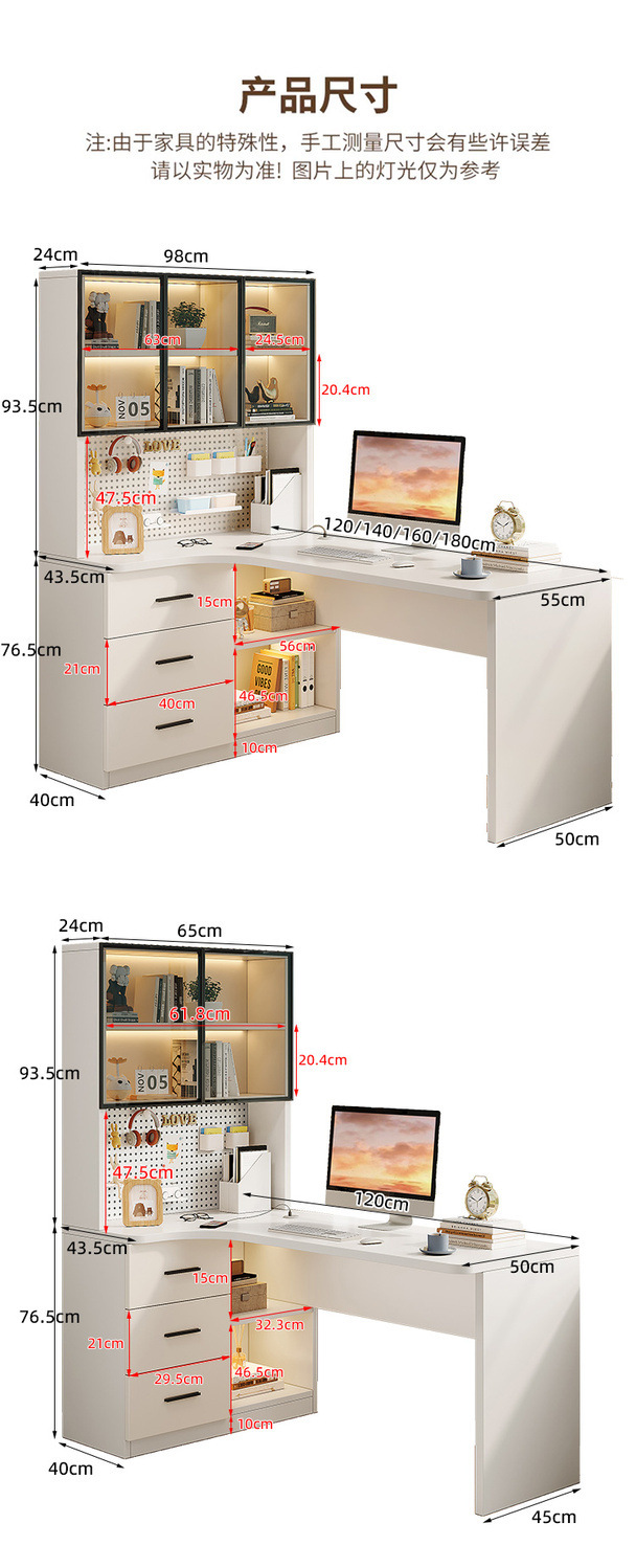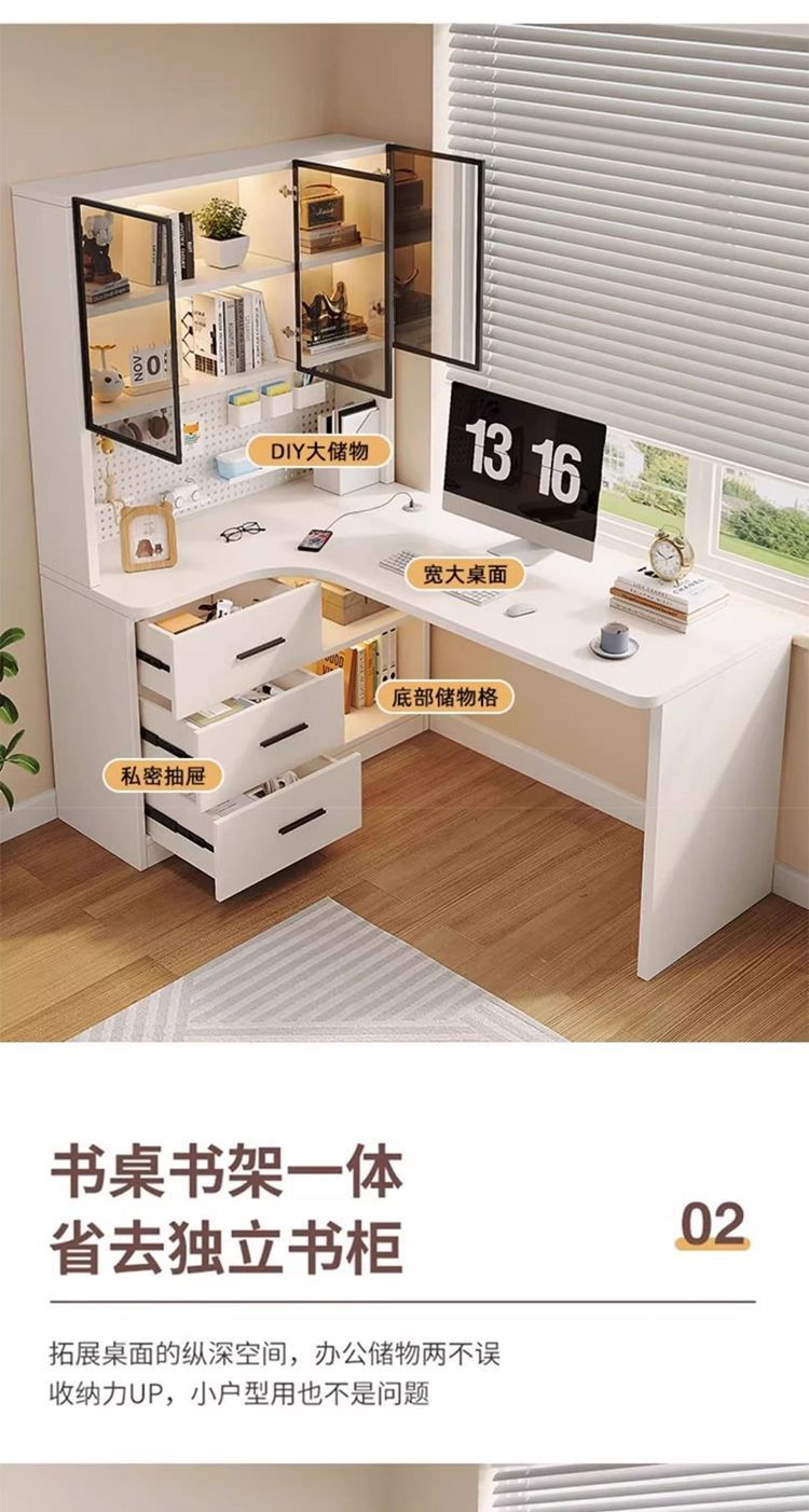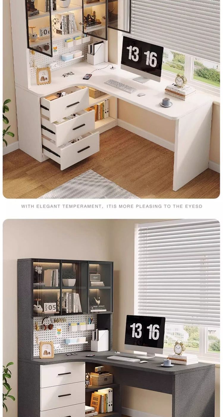 转角书桌洞洞板家用书桌书架一体现代简约轻奢学习桌拐弯电脑桌子