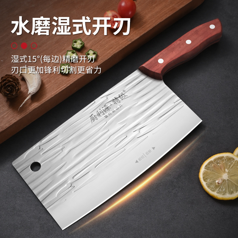 广东阳江不锈钢家用菜刀锤纹锻打厨用切片刀实木手柄锋利斩切刀具